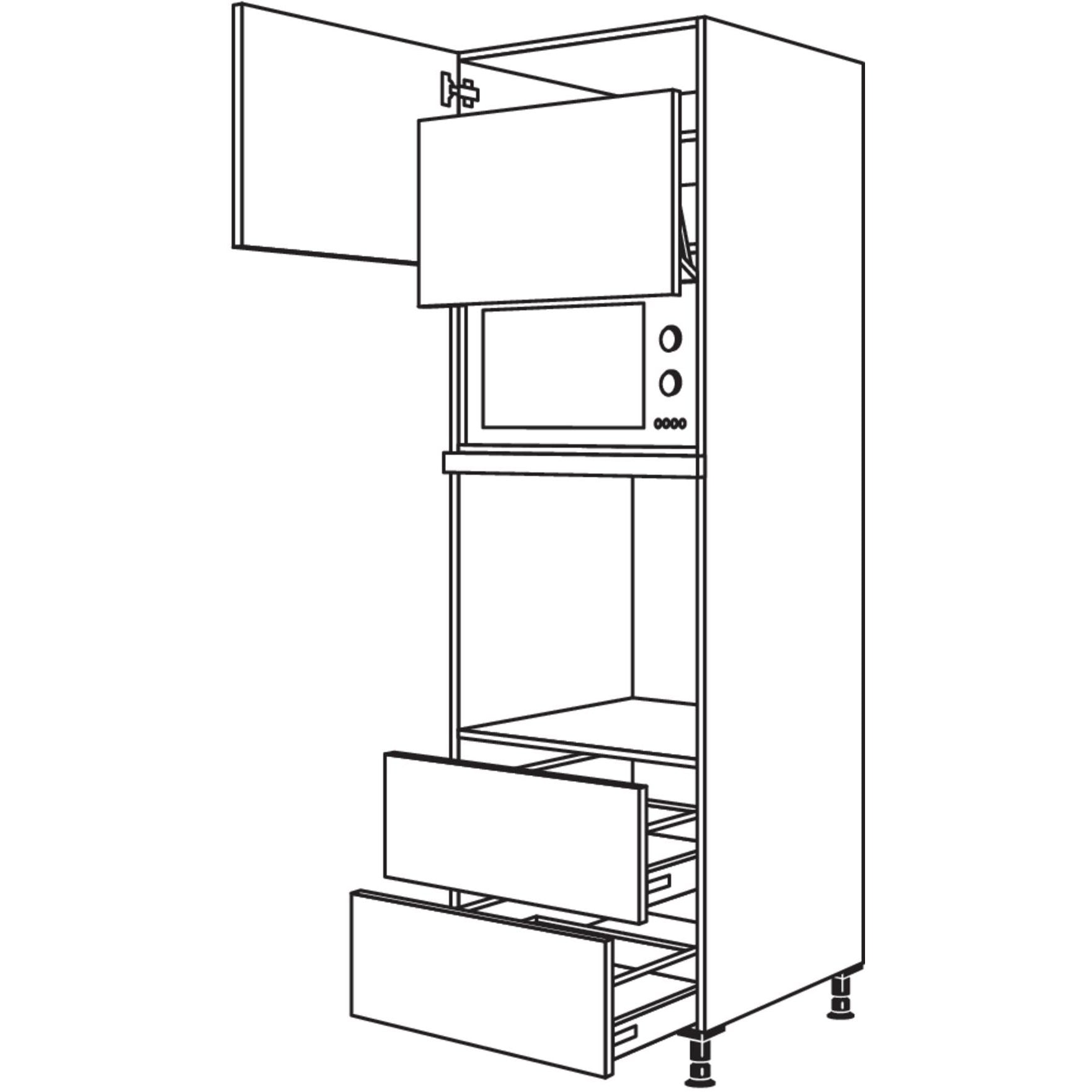 Zusätzlich verfügt der Schrank über eine feste Ausgleichsblende und zwei Auszüge mit hochwertigen Vollauszügen, die mit dem Silent System und Soft-Close Funktion ausgestattet sind. Der Schrank mit Auszug hinter der Lifttür eignet sich ideal für Standmikrowellen mit einer Höhe von bis zu 370 mm und einer Breite von bis zu 510 mm.