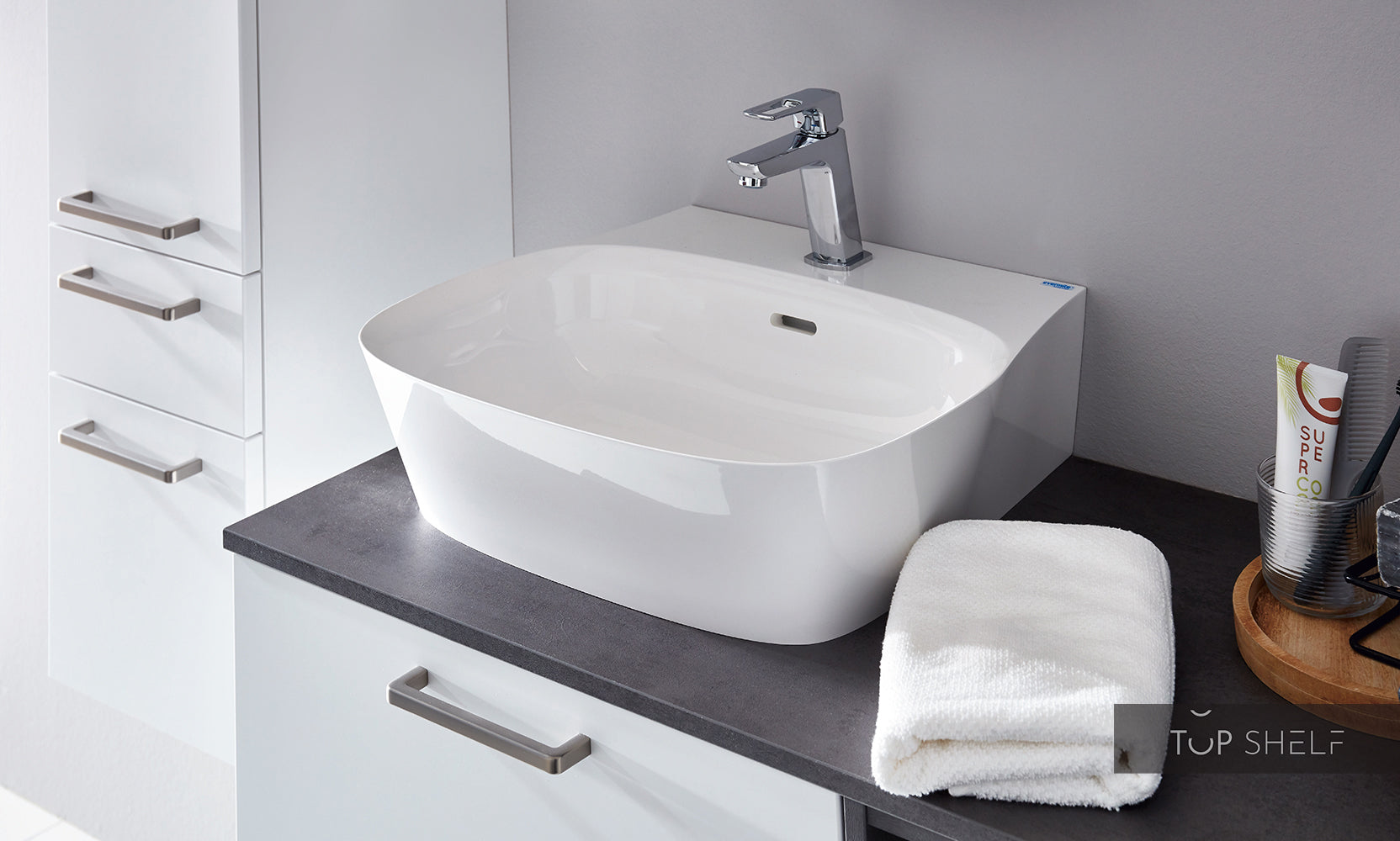Das komplett vormontierte nobilia elements Badmöbel Set Nordsee Bad besteht aus einem Set mit einer Gesamtlänge von 1,80 m | 180 cm. Das Möbelset beinhaltet zwei Unterschränke, ein Sideboard, ein Regal und optional ein Wandboard. Zu den Unterschränken, dem Regal und dem Sideboard wird ein passgenauer Abdeckboden mitbestellt. Die unempfindliche Abdeckplatte ist wahlweise in dem Dekor 354 Beton Schiefergrau und 198 Eiche Sierra erhältlich. Zu den nobilia elements Schränken wird das passende Zubehör mitgeliefert. Dazu gehört ein Mineralguss Waschtisch, eine Armatur und ein Siphon.