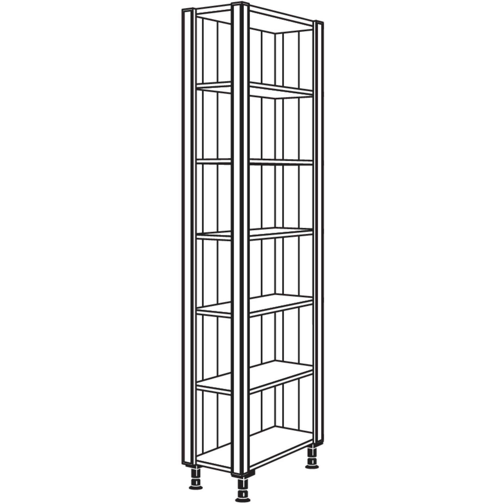 Die Seiten- und Rückwand des Regals sind furniert und verfügen über eine ansprechende Rillenstruktur. Mit einer Tiefe von 583 mm und einer Breite von 323 mm passt das Regal ideal in jede Küchenecke.