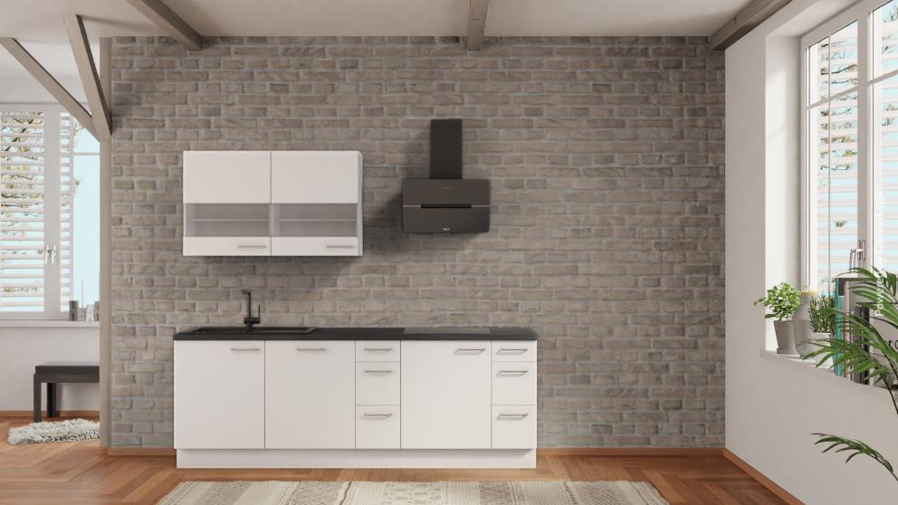 nobilia Singleküche Rosenheim 240 cm Weiß matt Beton Schiefergrau