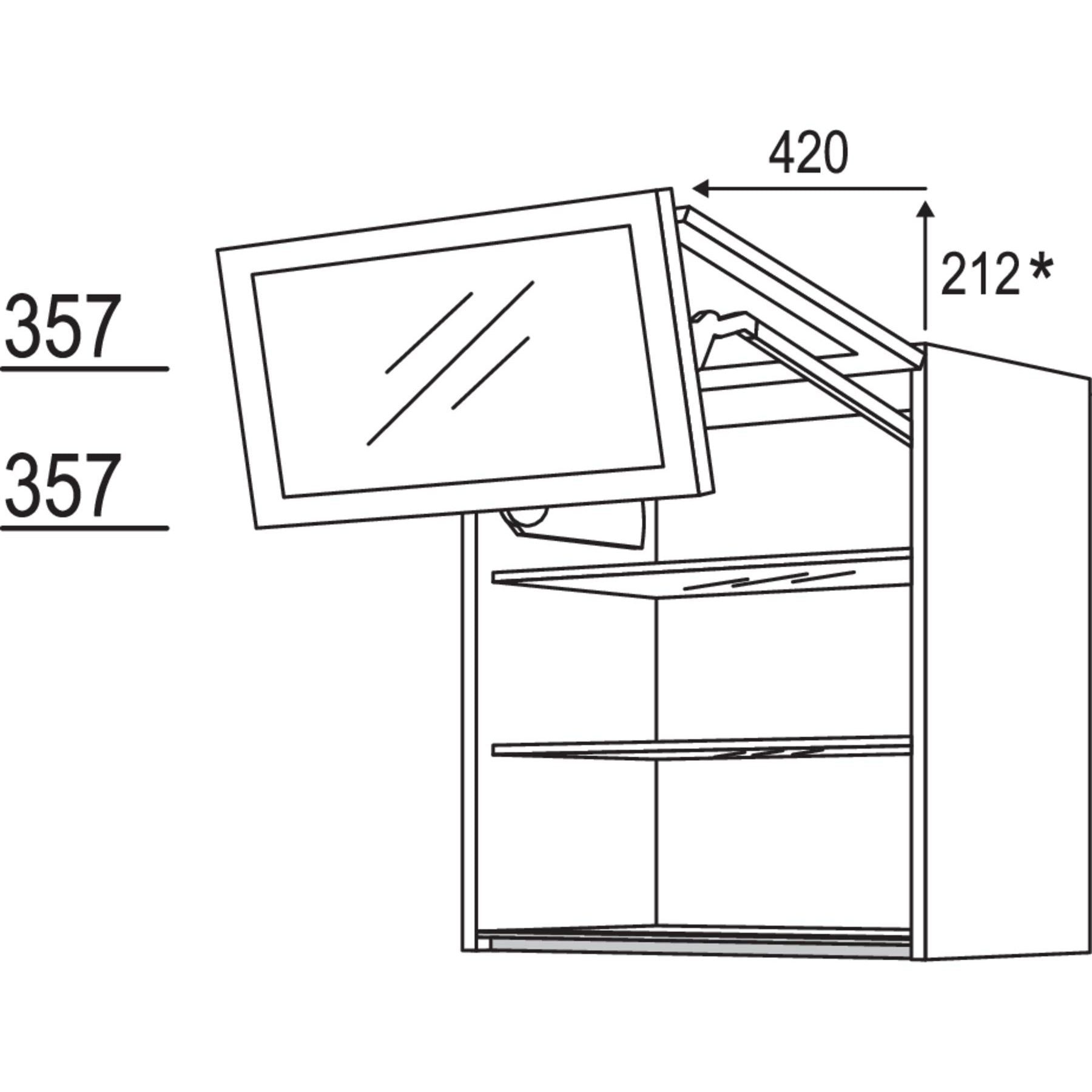 The nobilia wall cabinet with folding lift door is the perfect solution for your kitchen. With high-quality Blum Aventos lift-up fitting technology and soft-close function, this cabinet offers not only functionality but also style.