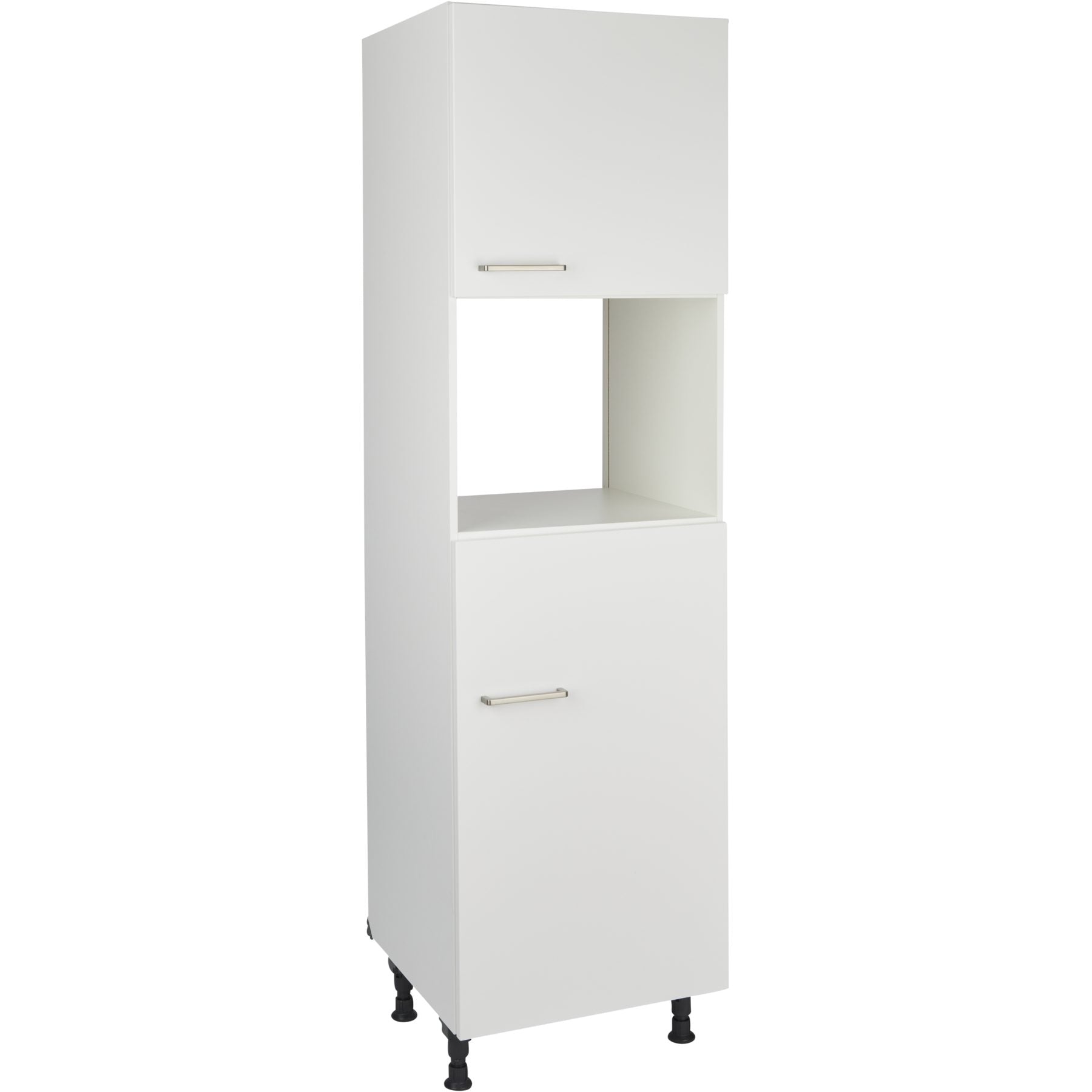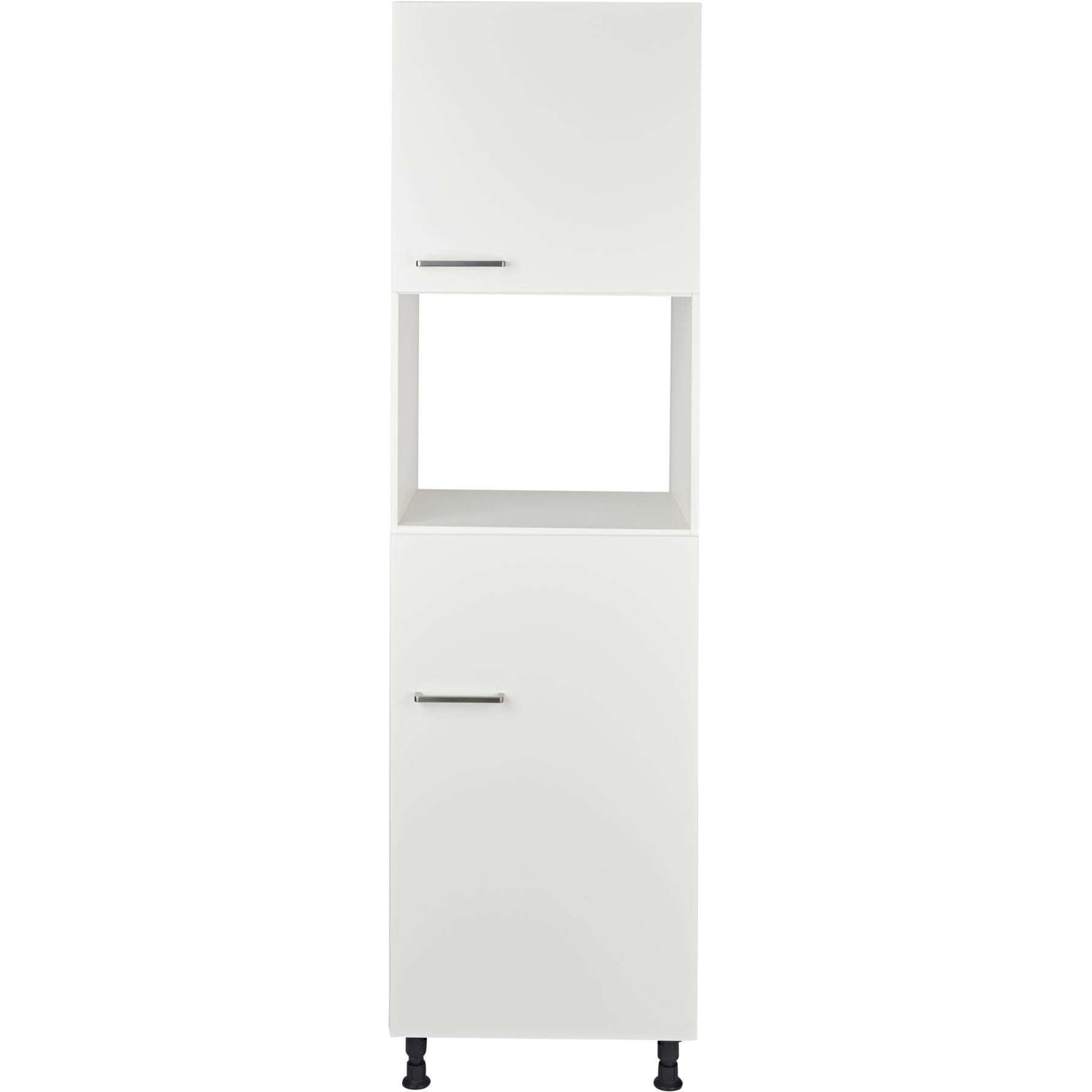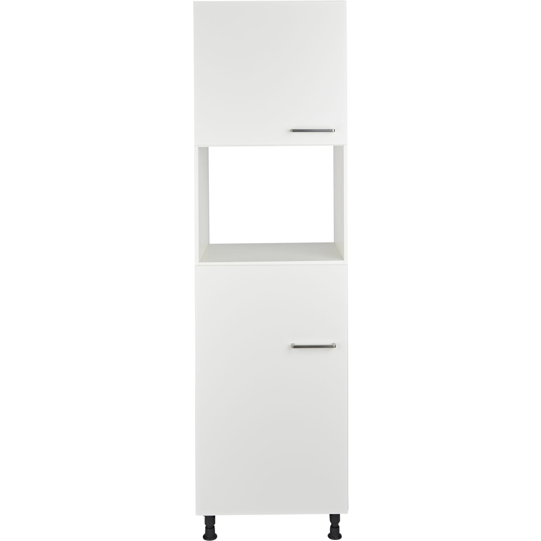 The nobilia elements appliance conversion tall cabinet can be ordered individually and delivered in a width of 60 cm. The matte tall cabinet surface ensures a radiant white kitchen, is very durable, scratch-resistant, and easy to clean.