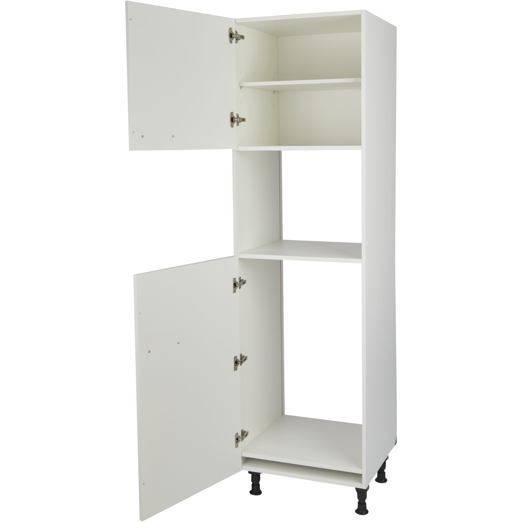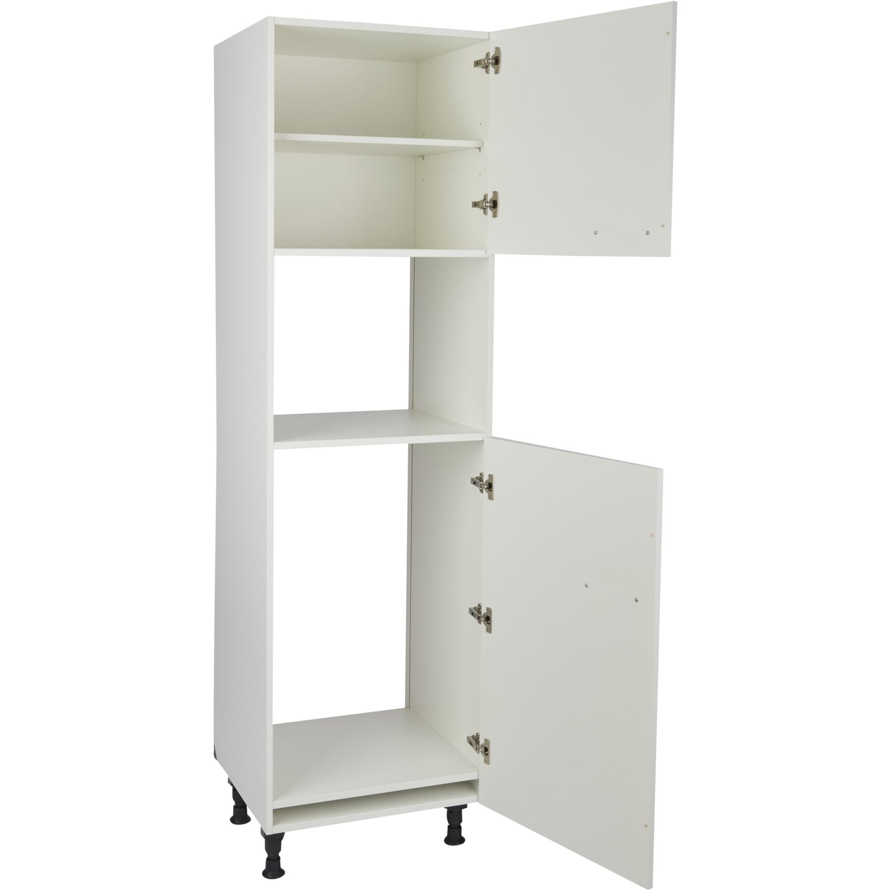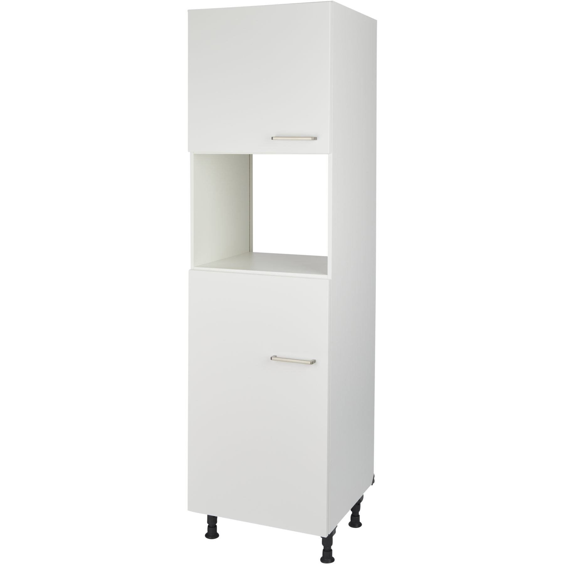 The nobilia elements appliance conversion tall cabinet can be ordered individually and delivered in a width of 60 cm. The matte tall cabinet surface ensures a radiant white kitchen, is very durable, scratch-resistant, and easy to clean.