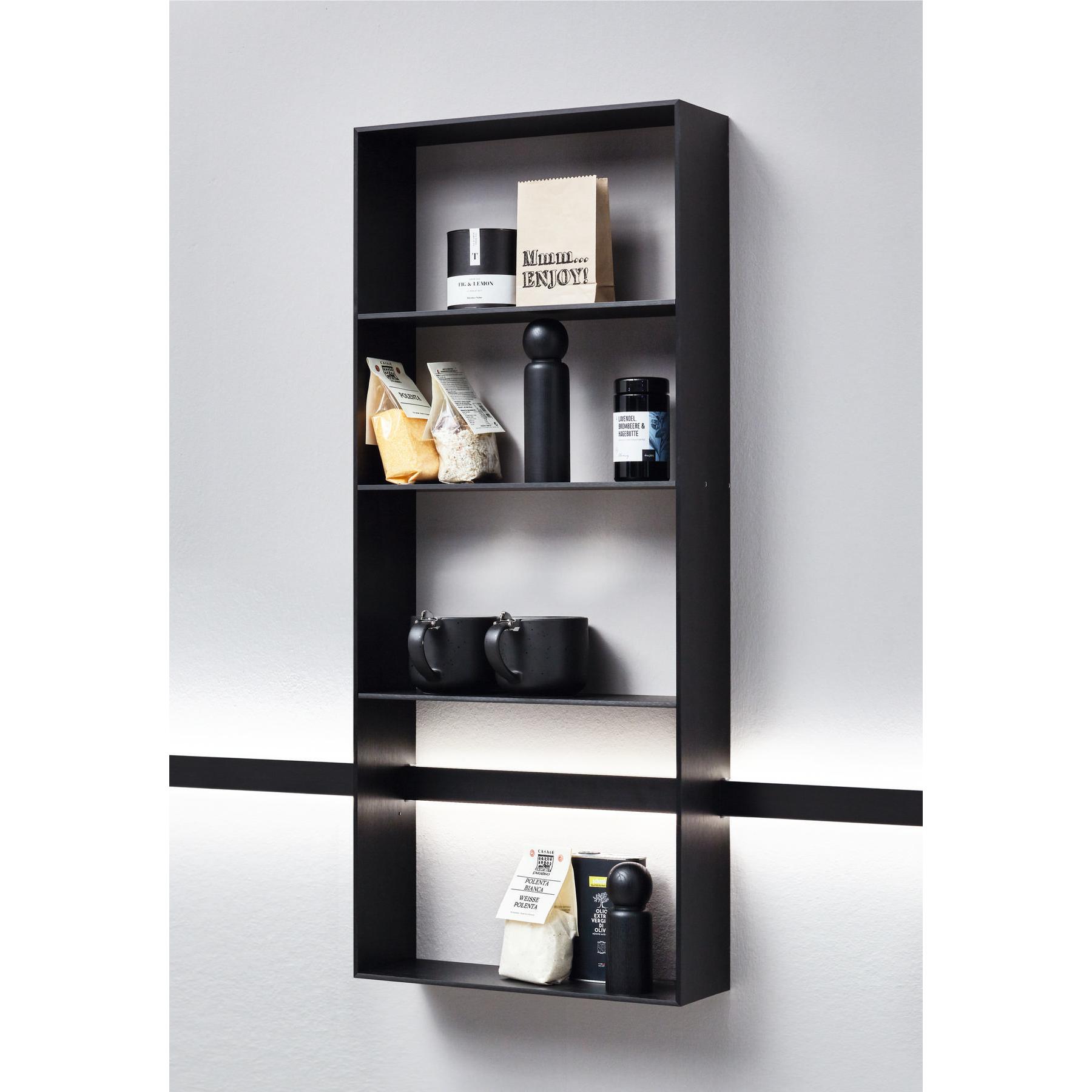 The nobilia Aluminium Shelf Sign Emotion is the perfect addition to your kitchen. With three fixed shelves, it offers ample space for your kitchen utensils and decorations. It is specially designed for planning in the niche and can be seamlessly connected to wall cabinets with a height of 1080 mm and a depth of 150 mm.