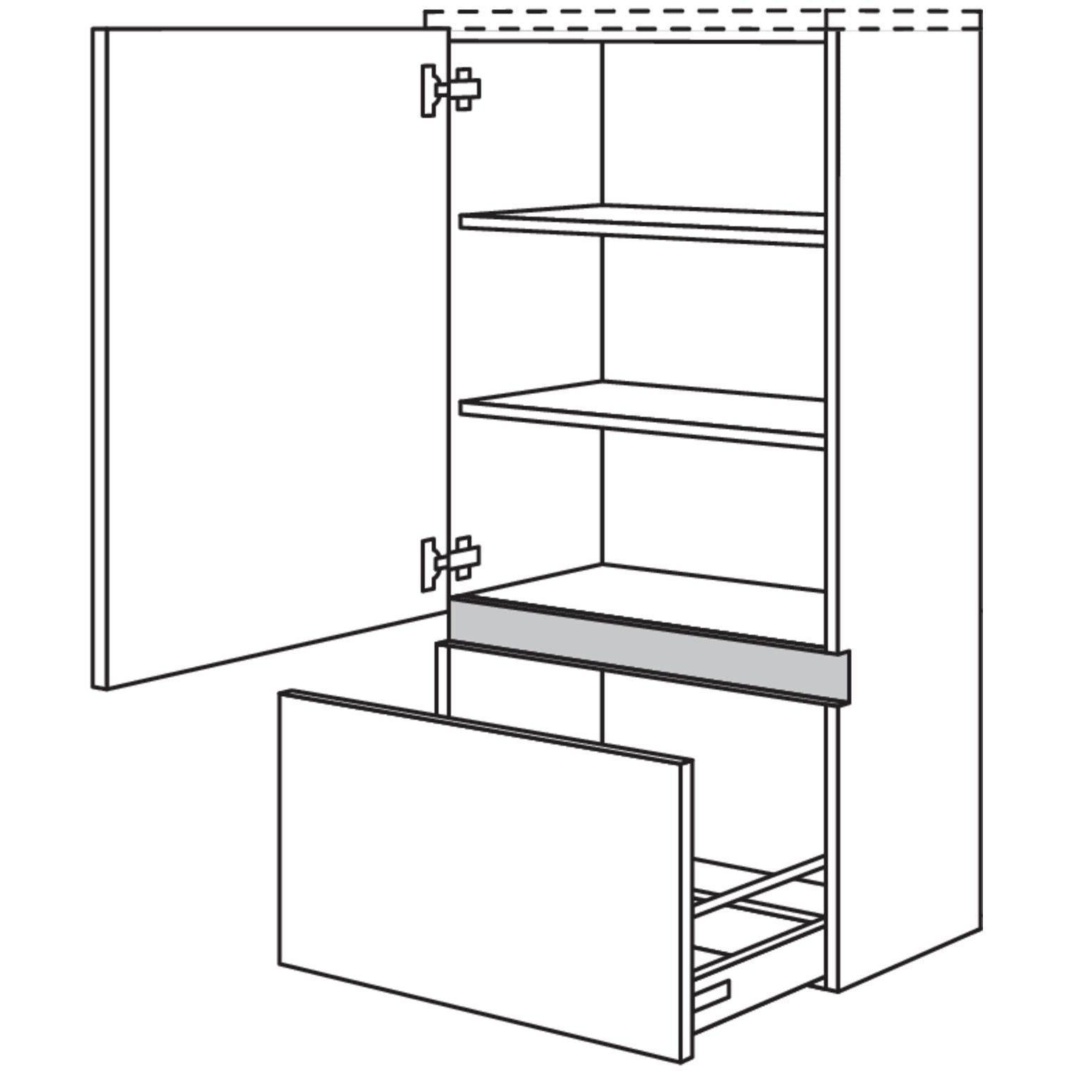 The nobilia bathroom mid-cabinet is the perfect addition to your bathroom. With one door equipped with automatic cup hinges and door dampers with soft-close function, as well as two shelves and one drawer with high-quality full extensions and Silent System / Soft-Close damping on opening and closing, this cabinet offers not only storage but also comfort.