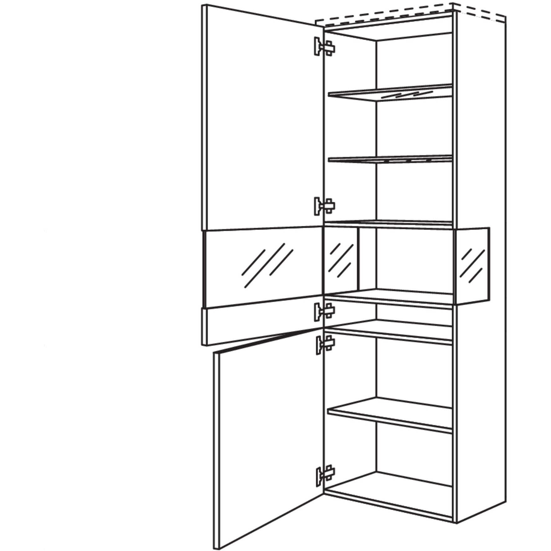 Various glass variants are available for an additional charge, including No. 02 and 39. The base foot set MP-SOWR (height: 20 mm) is also included. The total height of the vitrine is 2036 mm, making it an impressive and functional element in your kitchen.