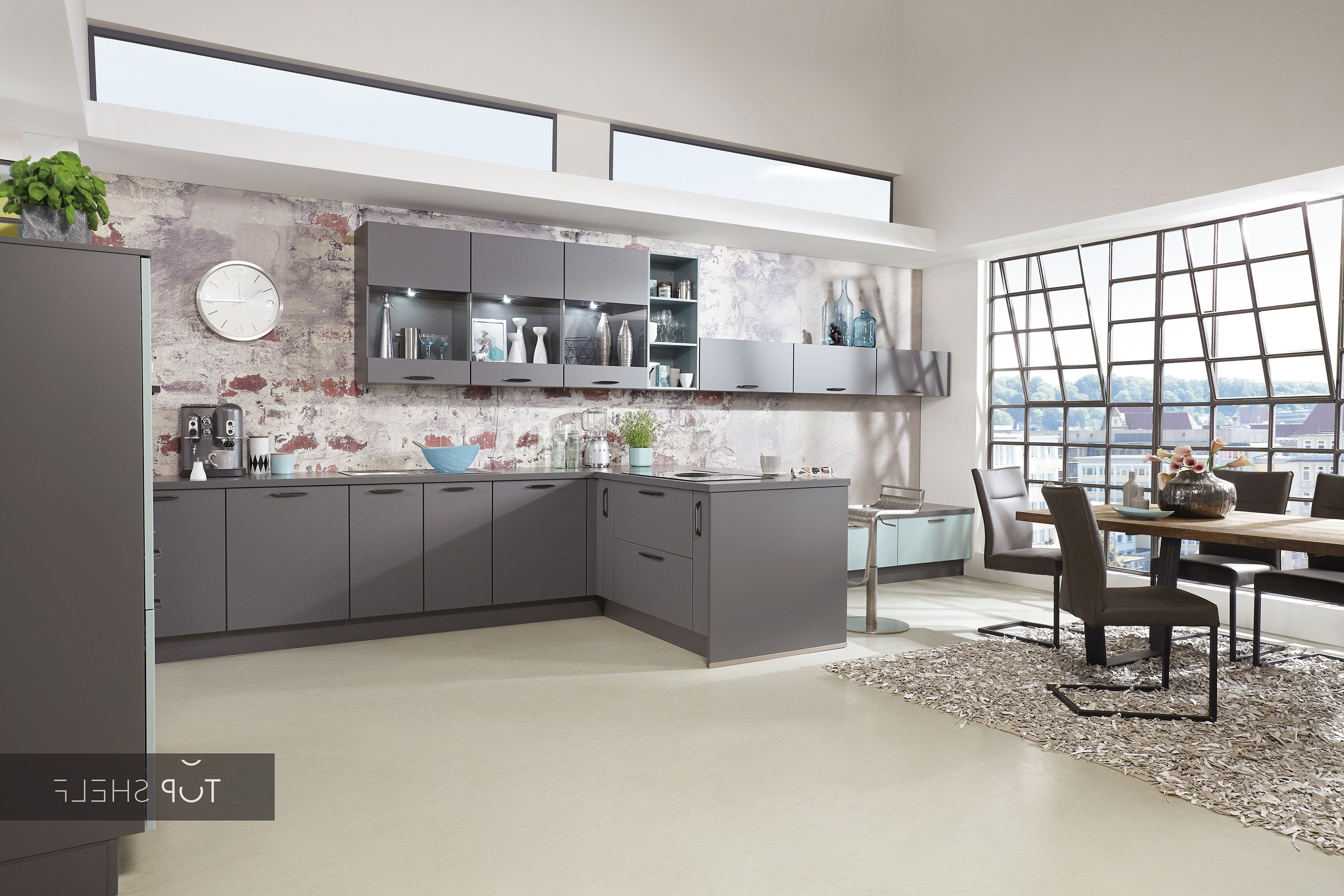 nobilia kitchen with kitchen island Touch 334 lacquer laminate slate gray super matte 600 + 120 cm configurable without electrical appliances