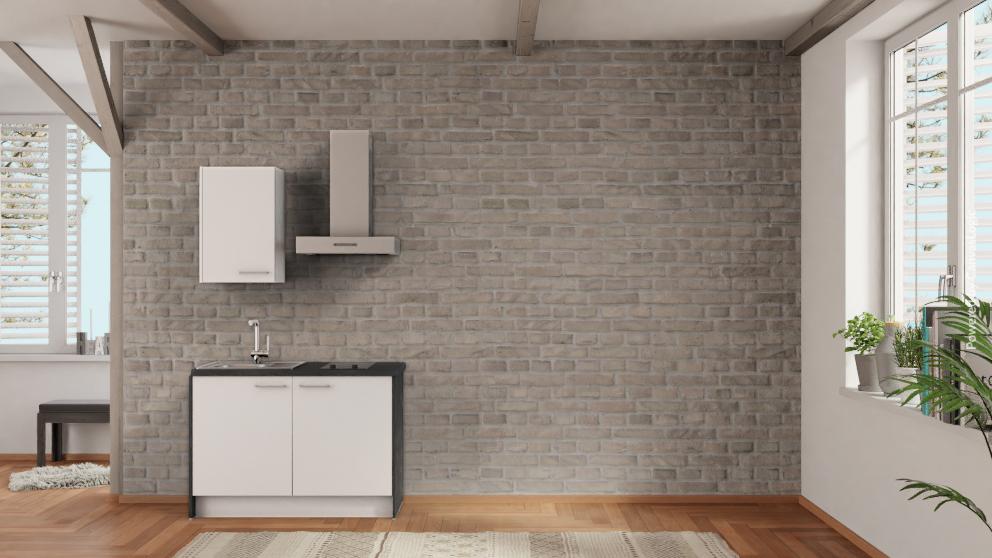 nobilia Tea Kitchen Erfurt Compact Kitchen | 3D Kitchen Configurator | mini Kitchen Unit in Alpine White affordable from the nobilia Elements range | 120 cm wide | 2.15m high | 60 cm space for e.g. a range hood | Mini kitchen with cooktop