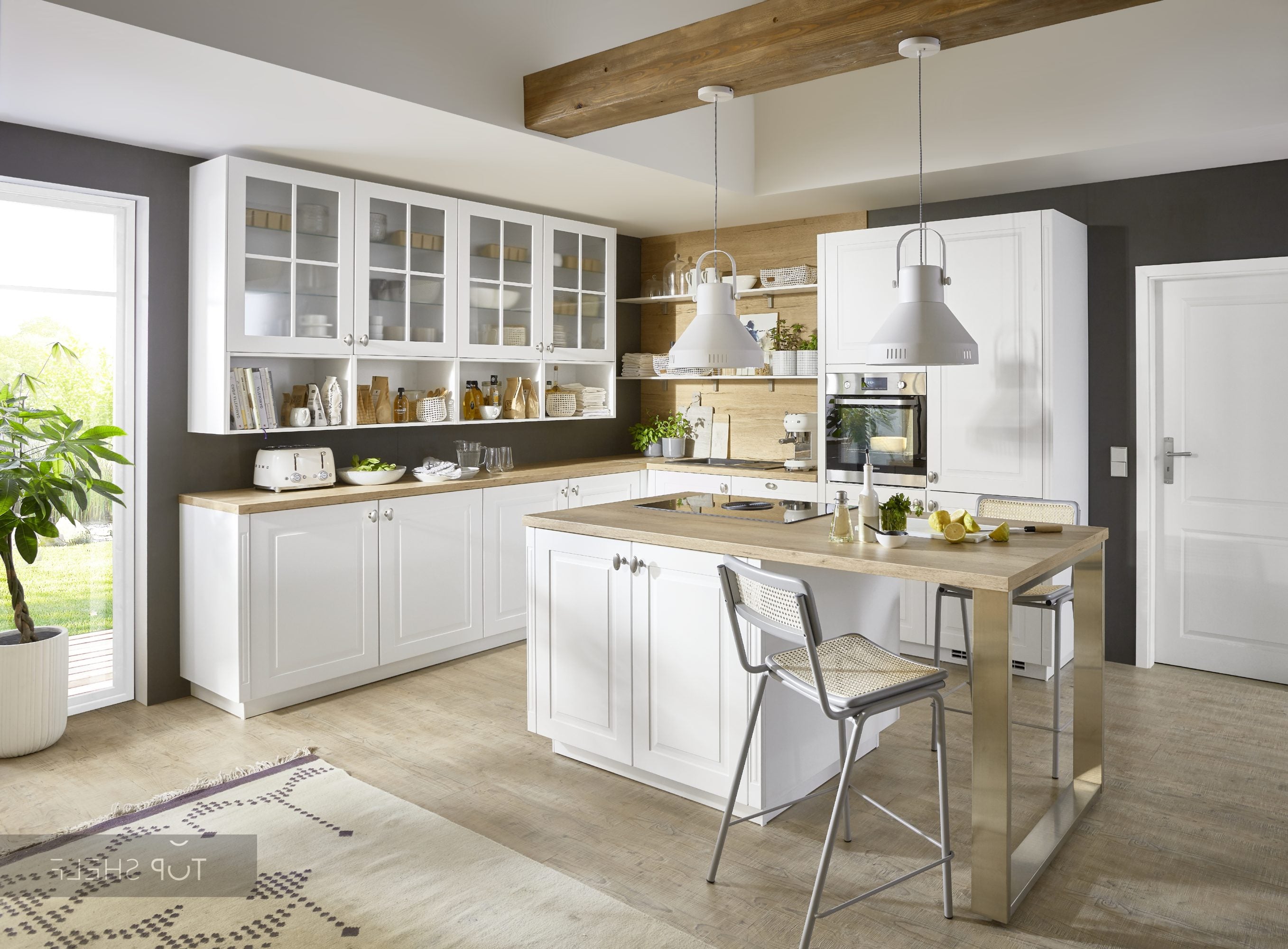 • nobilia corner kitchen with cooking island Sylt 847 Alpine white matte 310x300 + 210 x110 cm country house style