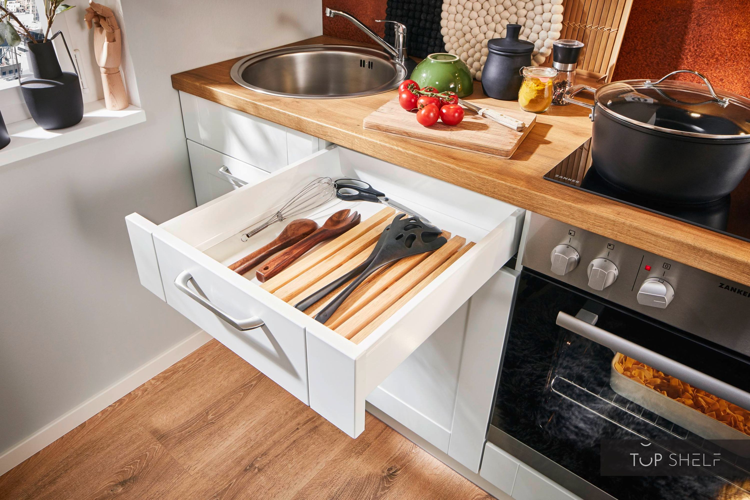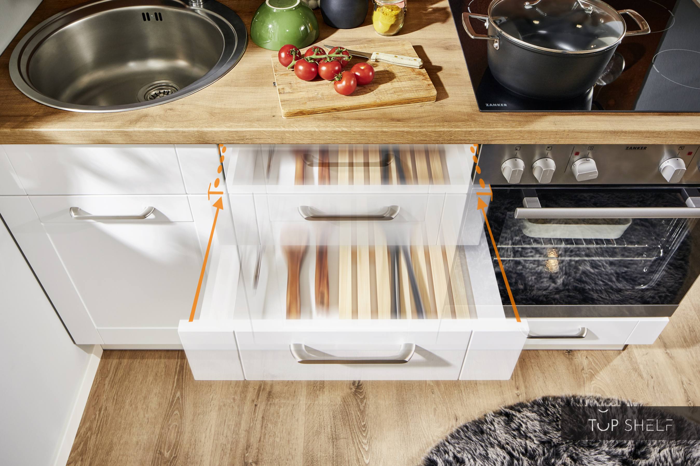 Shop online and pick up your order after 24 hours at the central warehouse or within 4 to 8 working days at one of the TOP-SHELF pickup warehouses. We will prepare the items for you and inform you as soon as you can pick up your order free of charge and take it home. Assemble your kitchen yourself and pick it up free of charge at one of the factories or pickup warehouses. You save a lot of time and shipping costs. Try it out right away!