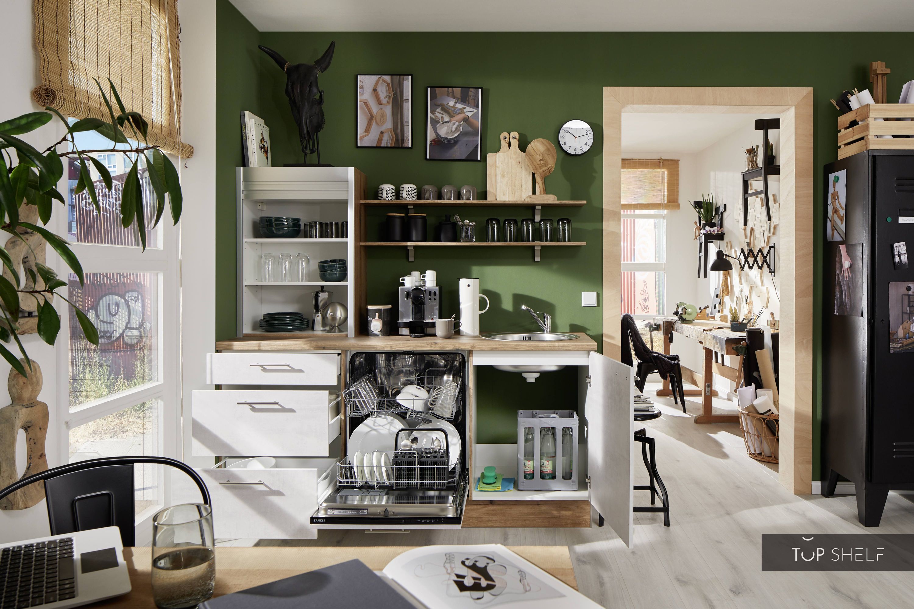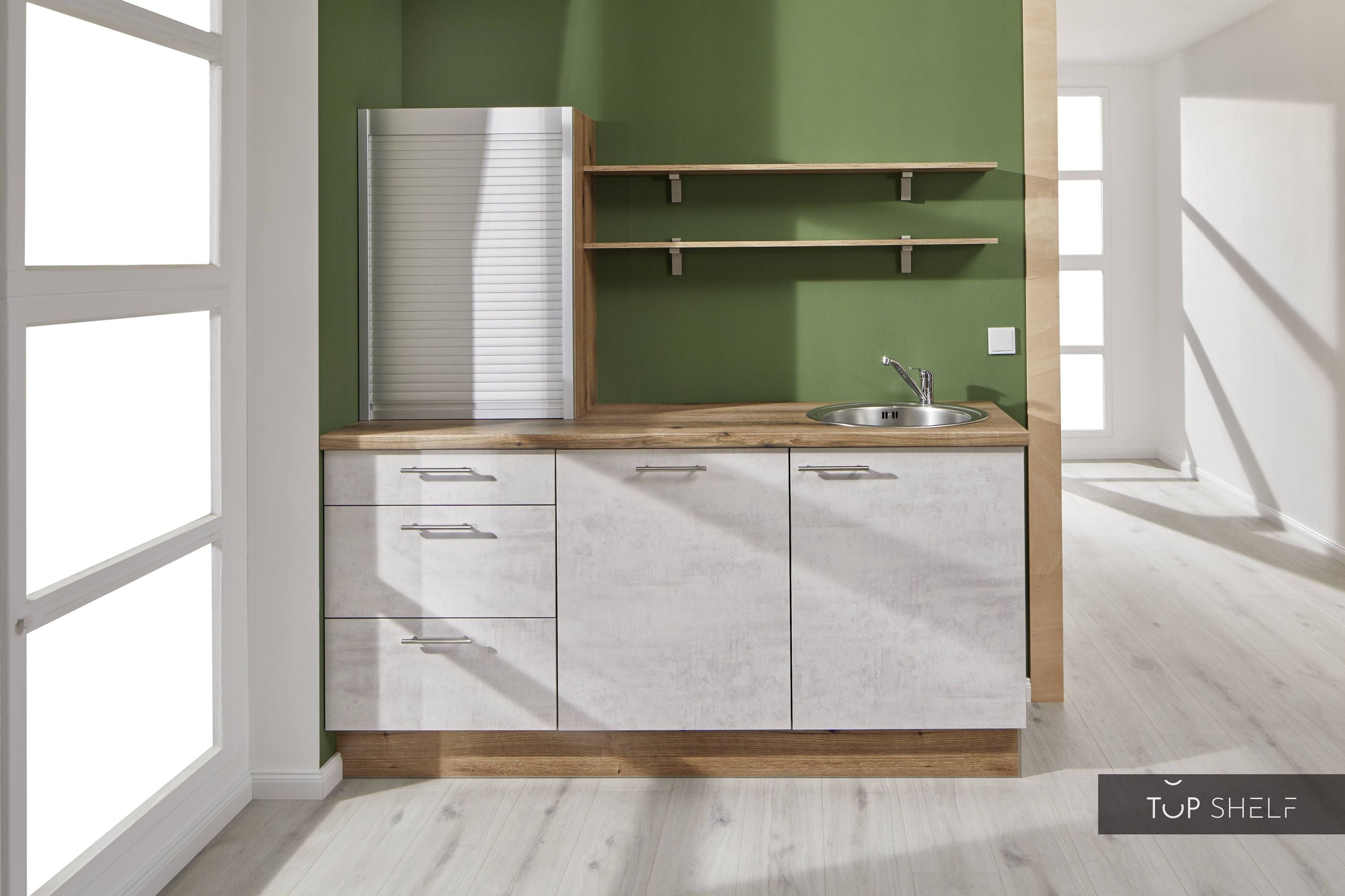 Shop online and pick up your order after 24 hours at the central warehouse or within 4 to 8 working days at one of the TOP-SHELF pickup warehouses. We will prepare the items for you and inform you as soon as you can pick up your order free of charge and take it home. Assemble your kitchen yourself and pick it up free of charge at one of the factories or pickup warehouses. You save a lot of time and shipping costs. Try it out right away!