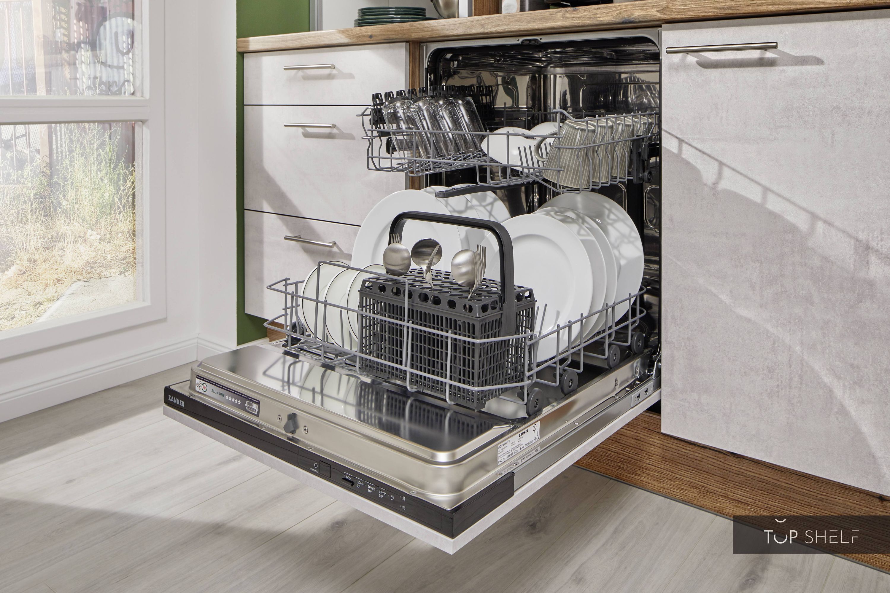 Zanker built-in appliances: refrigerator, glass ceramic cooktop, sink + faucet, worktop cutouts for sink and cooktop