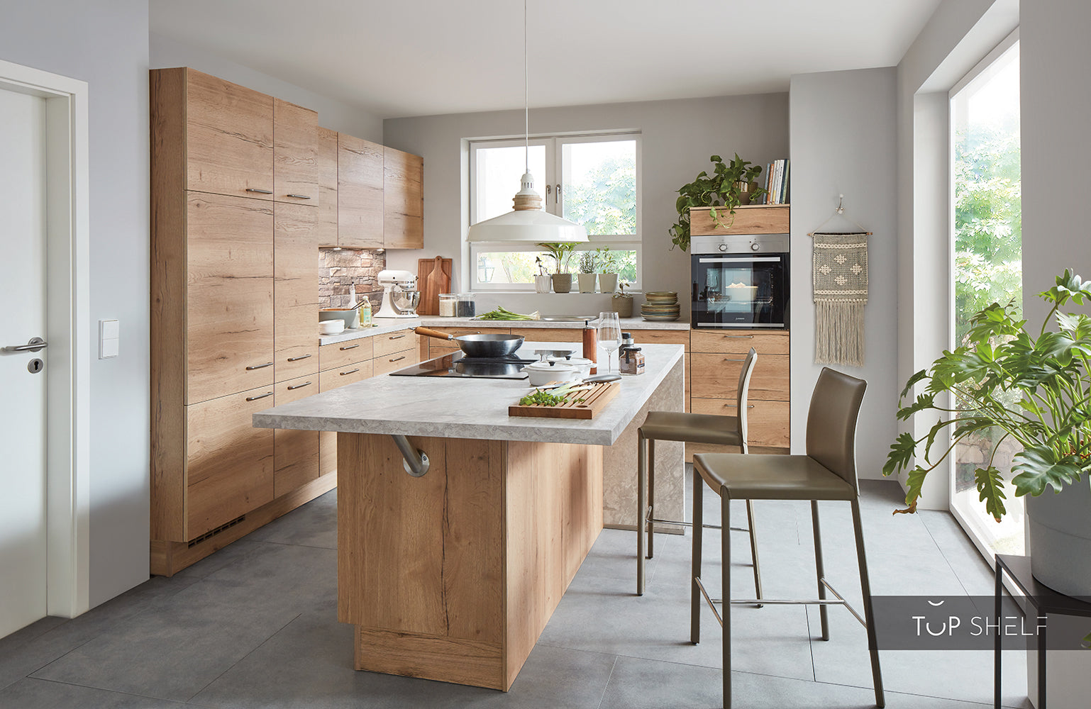 With our innovative online kitchen planner, you can plan an immediately available nobilia kitchen made of high-quality nobilia kitchen cabinets and optional electrical appliances. The TOP-SHELF.de 3D online kitchen planner is very fast, easy to use, completely free of charge and immediately shows you our transparent prices!