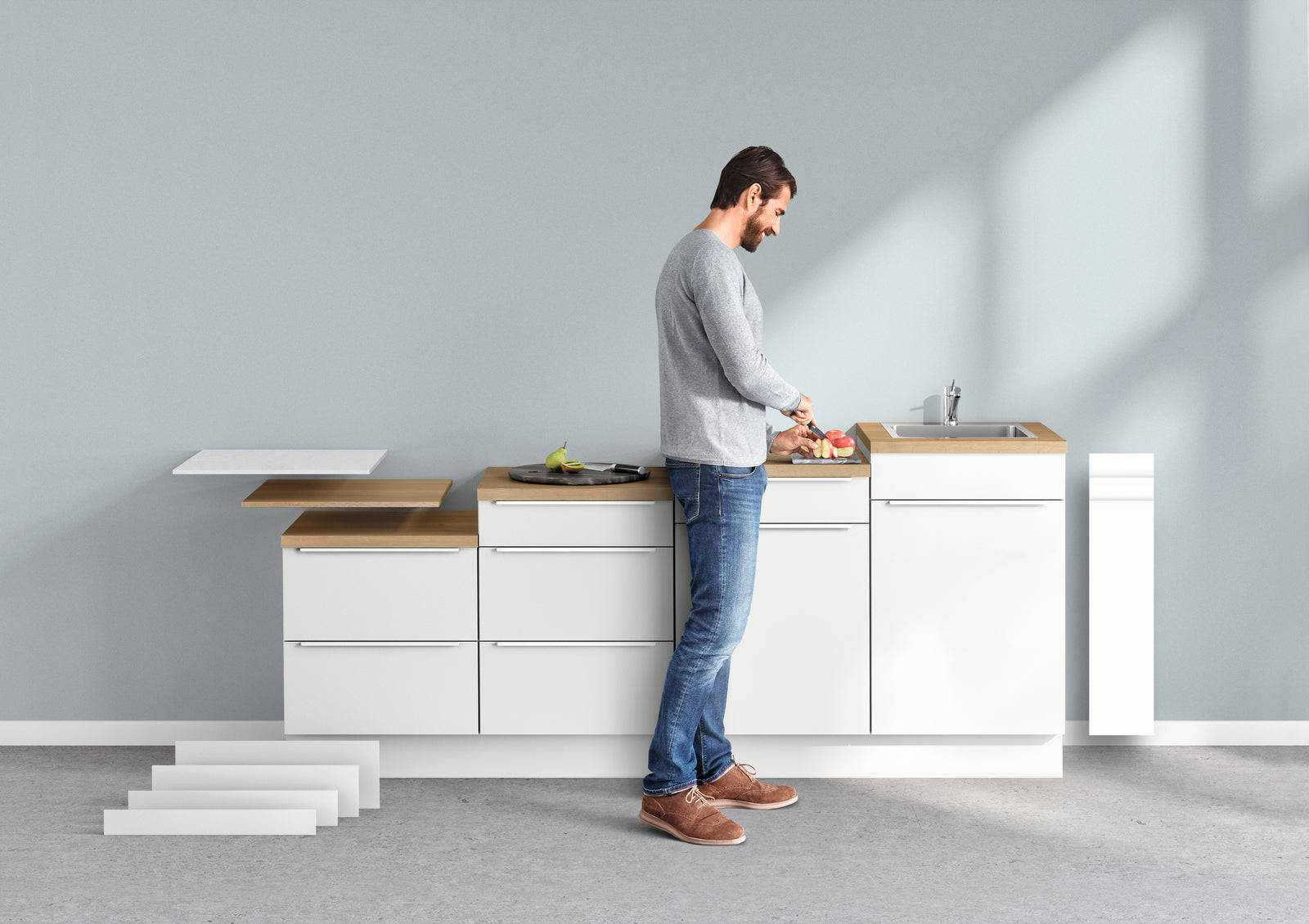 Standard worktops are 40mm thick. The nobilia Slim Line panels with a thickness of 16 mm are particularly elegant and at the same time almost as stable.