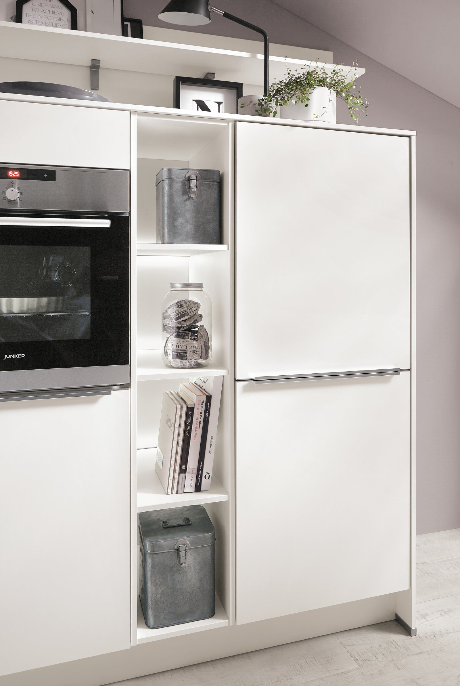 300 mm to 1,200 mm width. If the inside of the cupboard needs to be illuminated from above, nobilia offers the integrated LED recessed lights Manila Plus or Nova Plus, which are installed in the top floor of the wall cupboard. In addition, also in