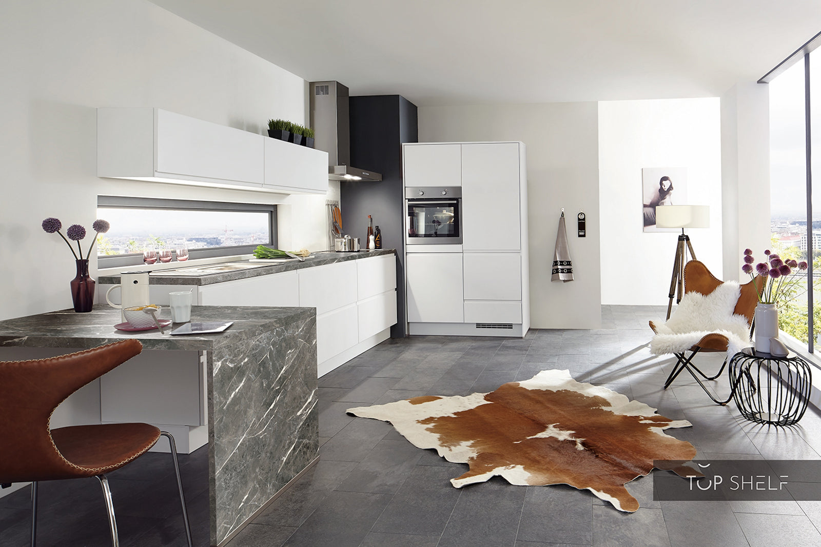 Nobilia offers the Cascada front in the three trendy colors of white, stone gray and reed. While the modern country style is reserved in terms of shape, the Cascada country style is easy on the eye with subtle colors such as the reed nuance or light grey. The matt white Cascada fronts in a classic look appear light and airy.
