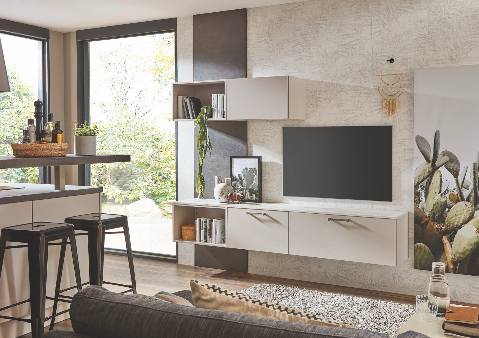 The nobilia elements living furniture brings style and elegance to your living room and ensures that the space impresses. With our living furniture, you not only get a functional solution but also the opportunity to design your living room stylishly and efficiently. This way, this room becomes the centerpiece of your home, where you can combine comfort and elegance, and where you can perfectly showcase your personal touch.