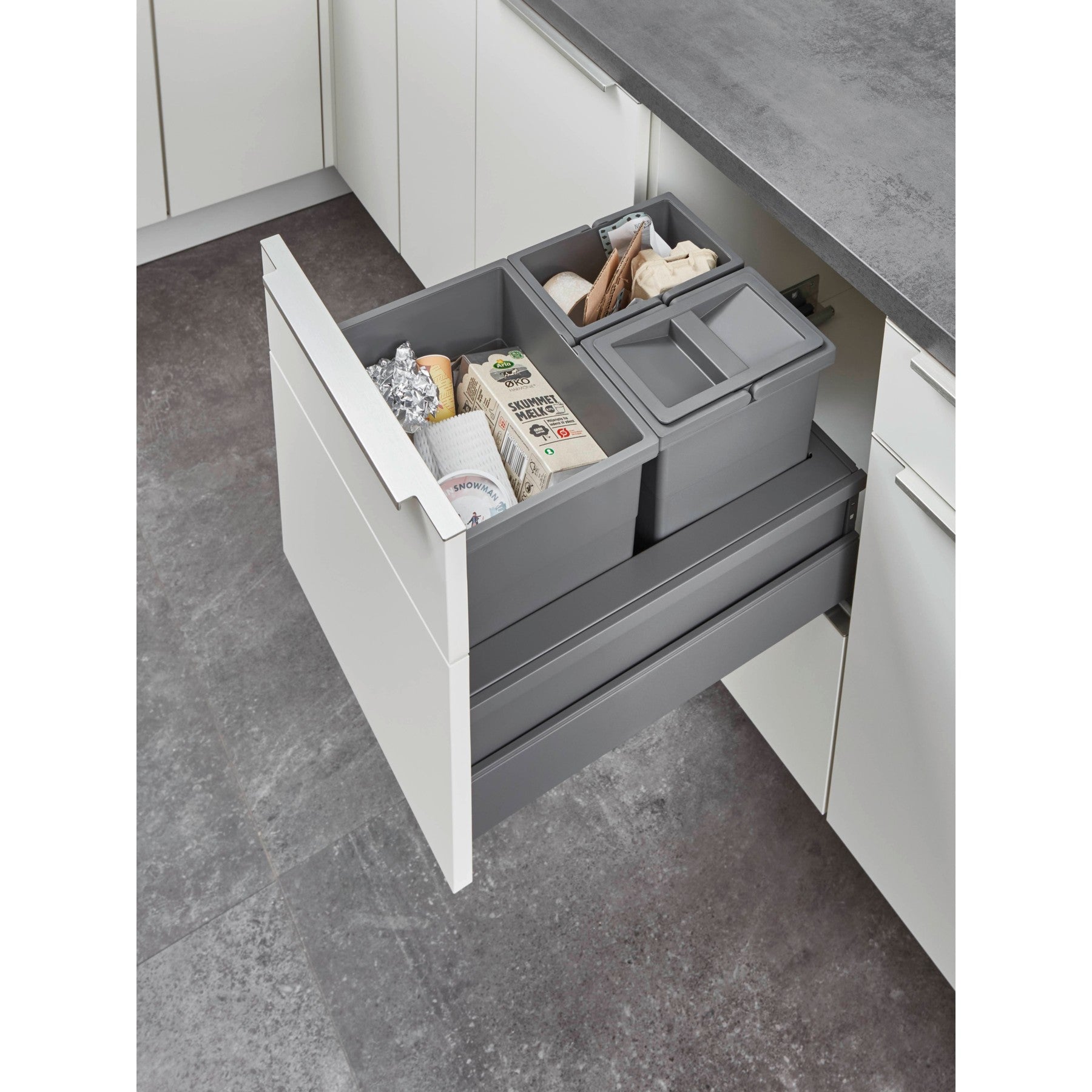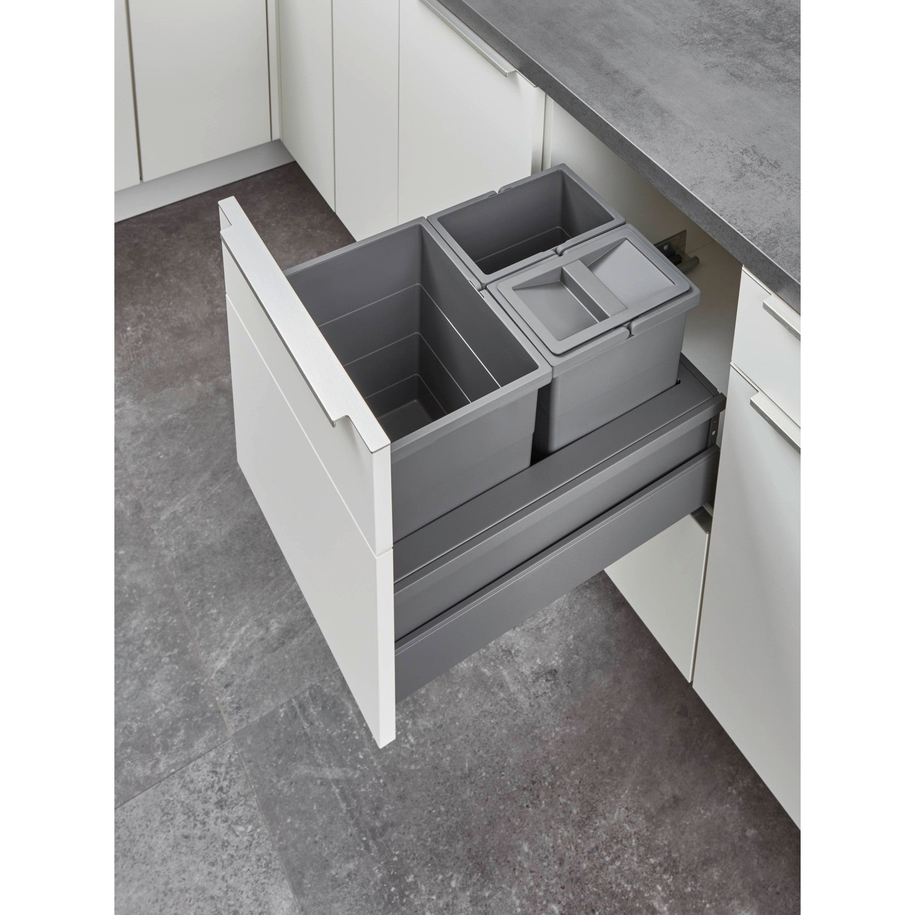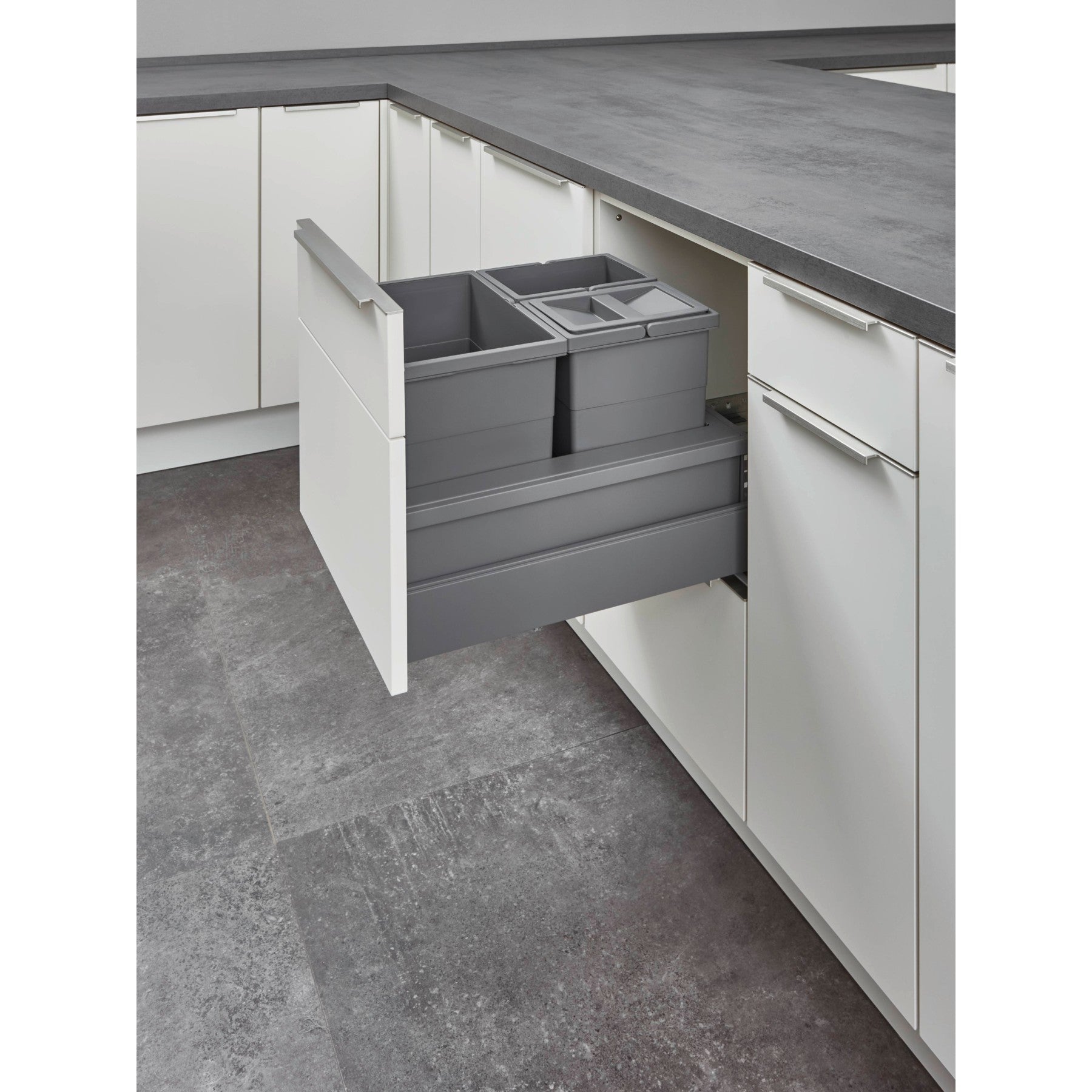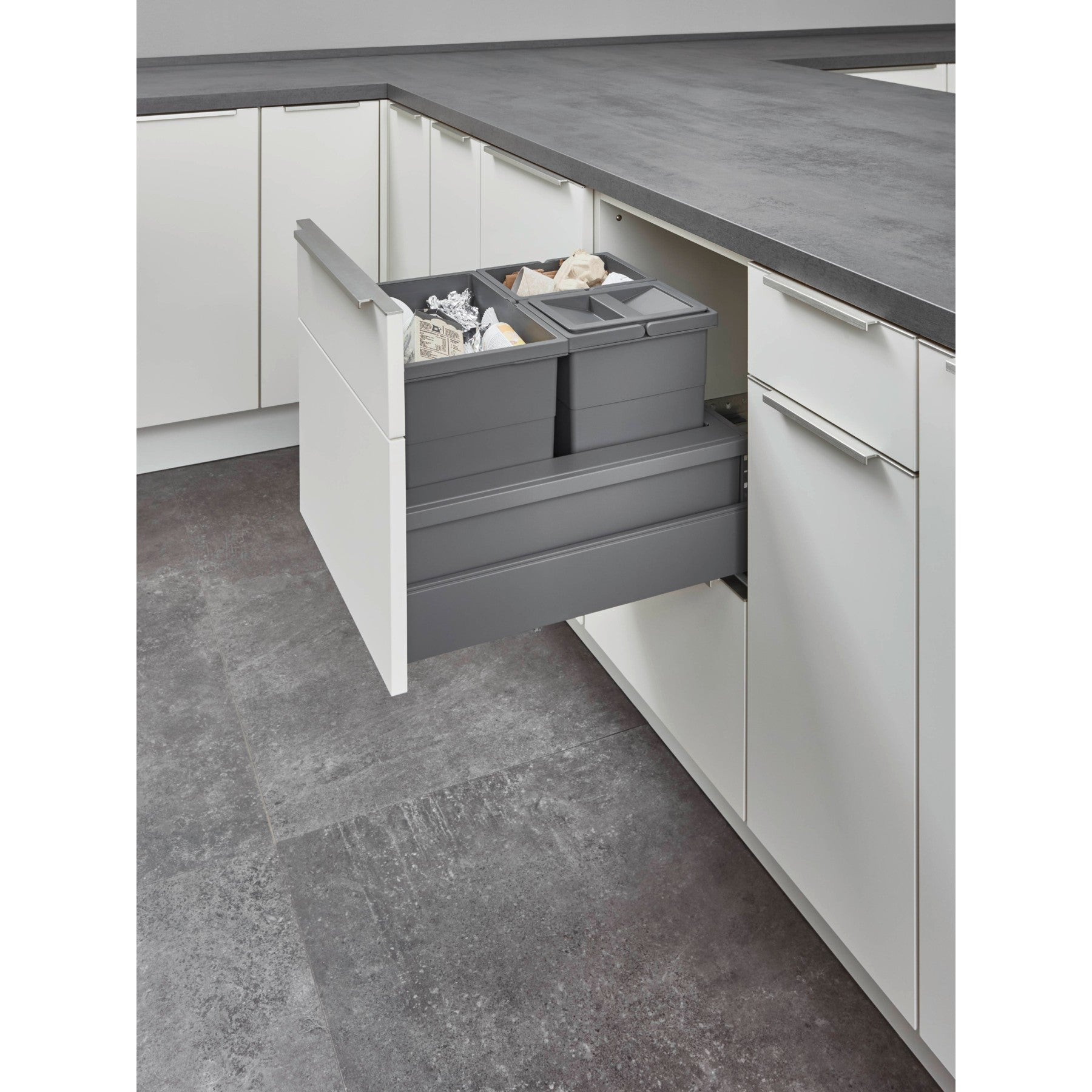 Discover the perfect solution for an environmentally conscious and organized kitchen with the nobilia pull-out cabinet for waste separation. nobilia, Europe's largest manufacturer of high-quality kitchen furniture, brings you a product that harmonizes design, functionality, and sustainability. This specially developed cabinet enables efficient waste separation directly under your countertop without compromising aesthetics.