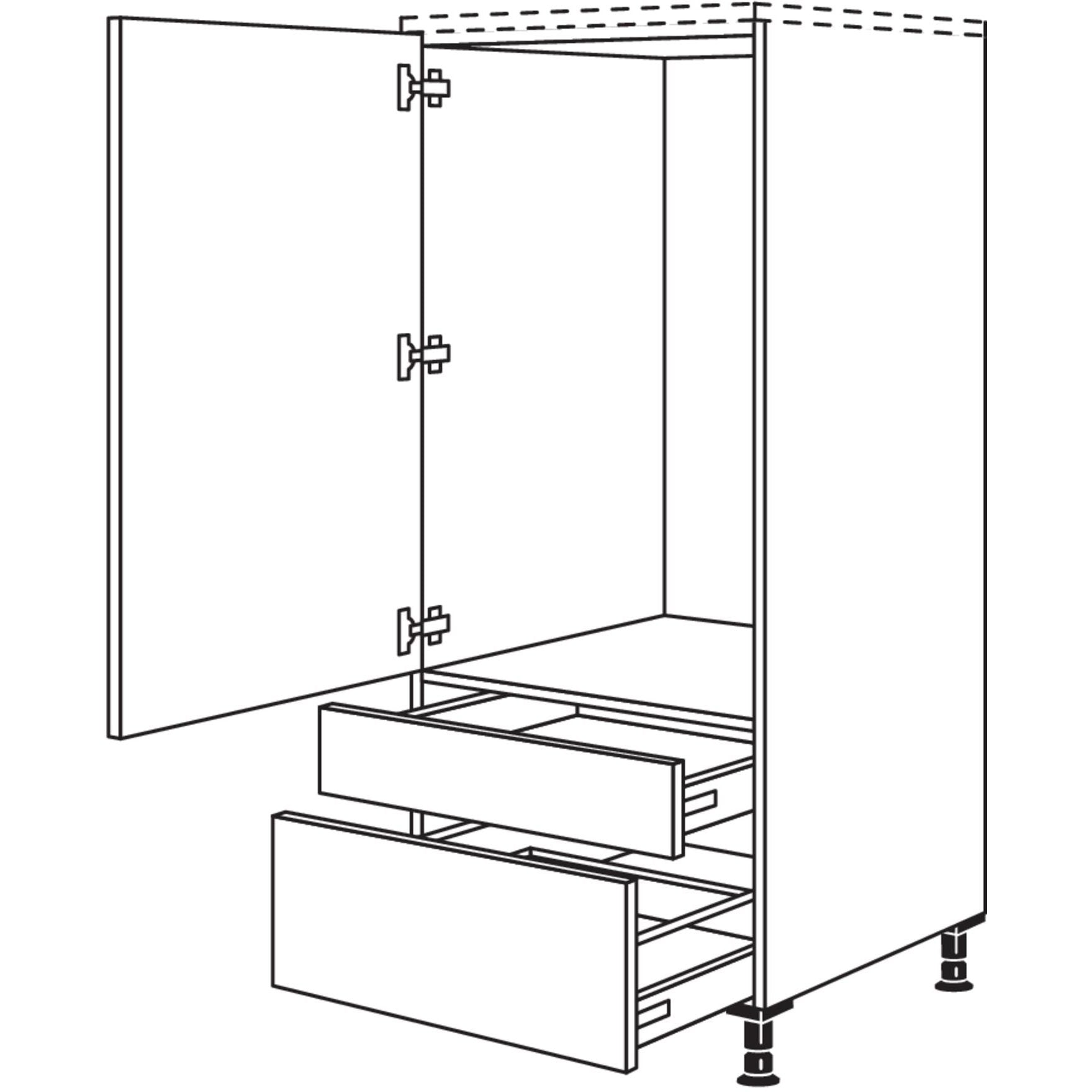 The nobilia appliance conversion refrigerator unit is the perfect solution for your kitchen. With a niche height of 1030 mm, this cabinet fits ideally into your kitchen design. It features an appliance door, a drawer with high-quality Soft-Close damping function from Hettich, and a pull-out with high-quality full extensions including Silent System / Soft-Close damping for both opening and closing.