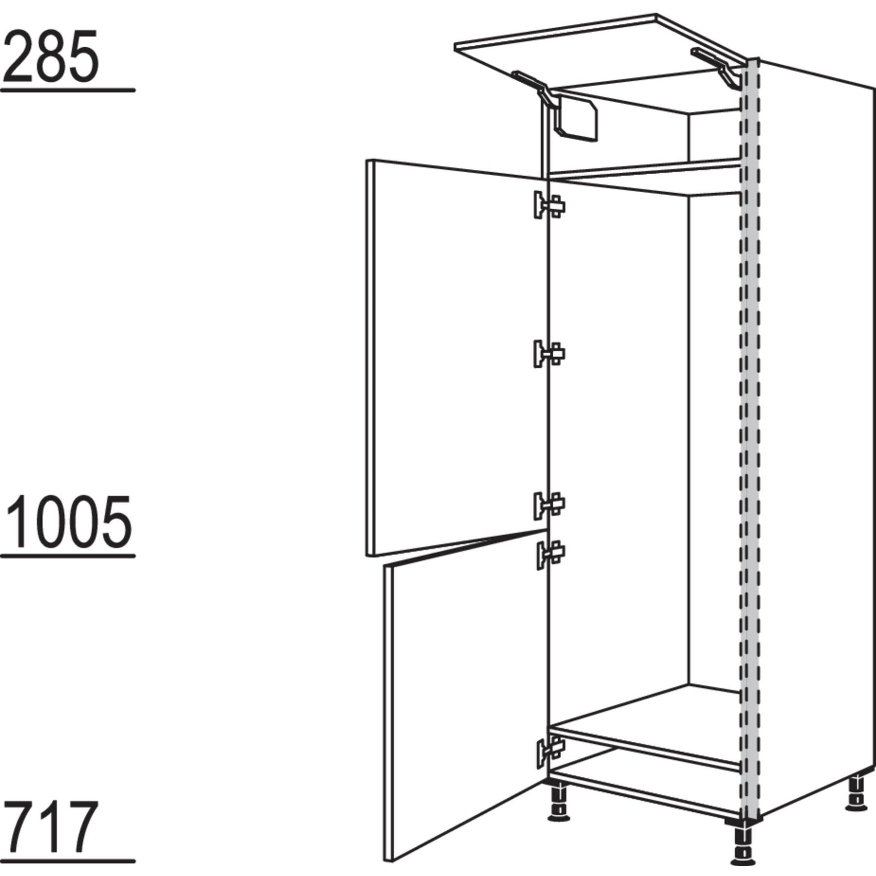 The nobilia appliance conversion for the fridge-freezer with a niche height of 1580 mm is the perfect solution to stylishly integrate your kitchen appliances. This cabinet features a flap with high-quality Blum Aventos lift fittings equipped with a soft-close function to ensure gentle closing. Additionally, the appliance conversion offers space for two appliance doors, providing you with convenient access to your fridge and freezer.
