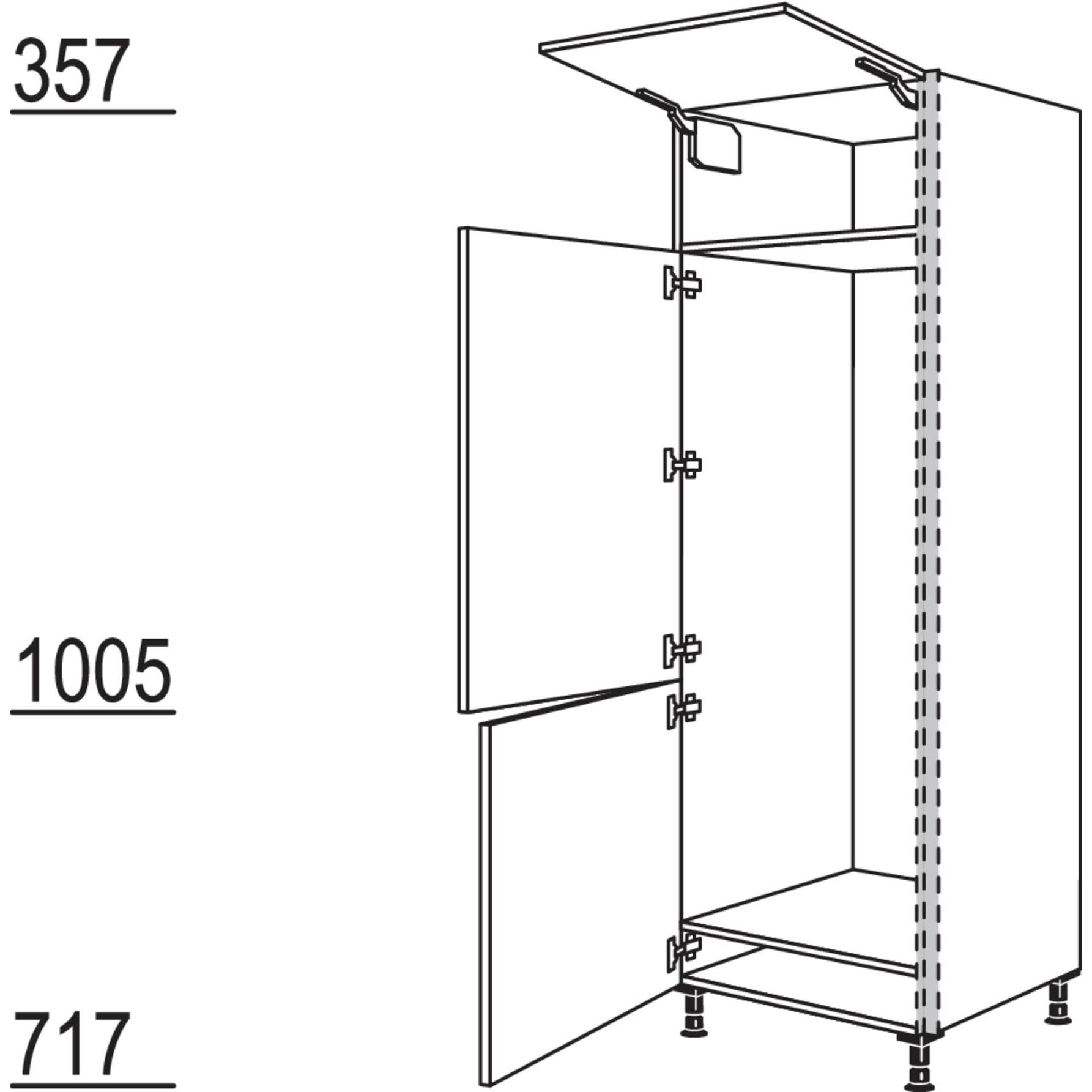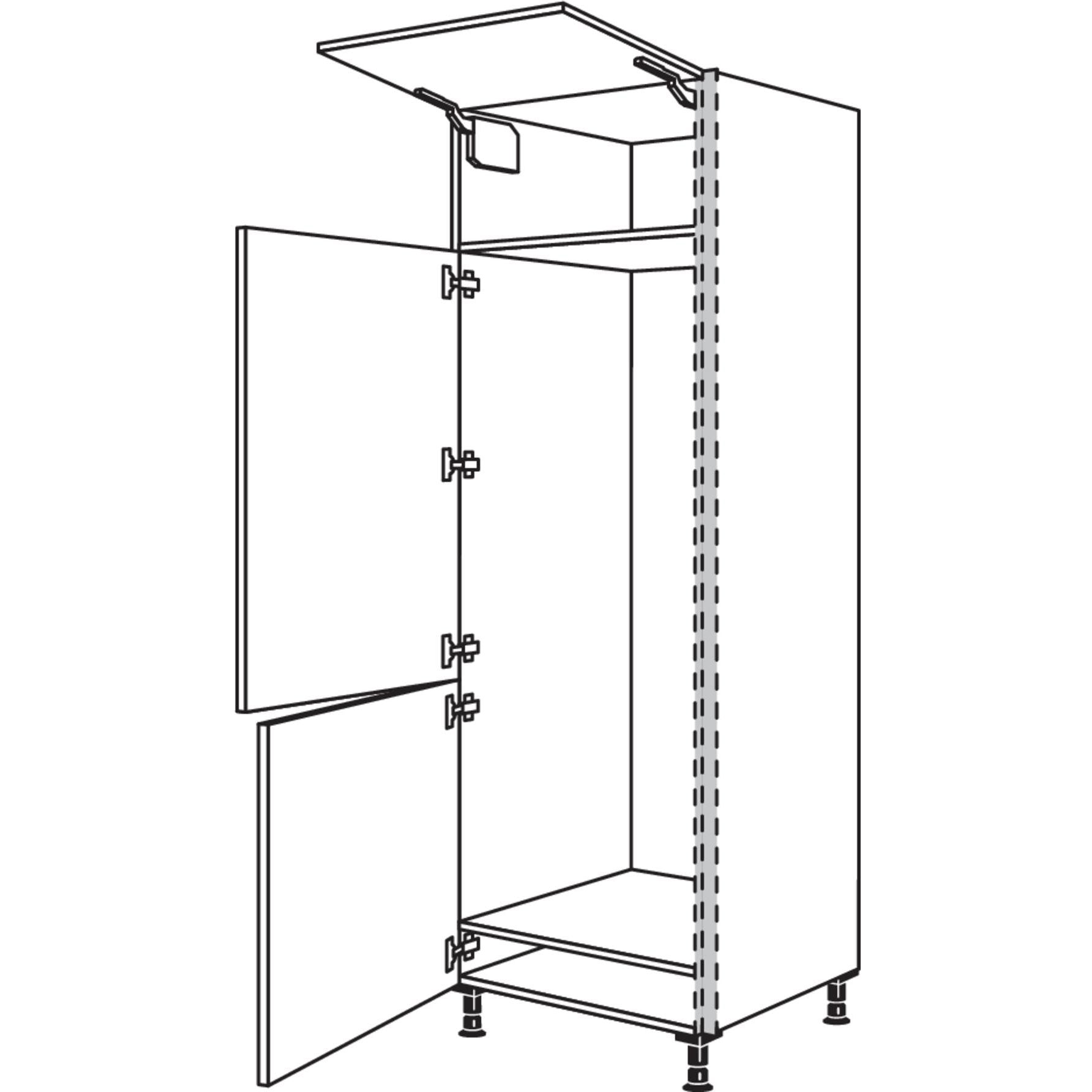 The nobilia appliance conversion for the fridge-freezer with a niche height of 1580 mm is the perfect solution to stylishly integrate your kitchen appliances. This cabinet features a flap with high-quality Blum Aventos lift fittings equipped with a soft-close function to ensure gentle closing. Additionally, the appliance conversion offers space for two appliance doors, providing you with convenient access to your fridge and freezer.