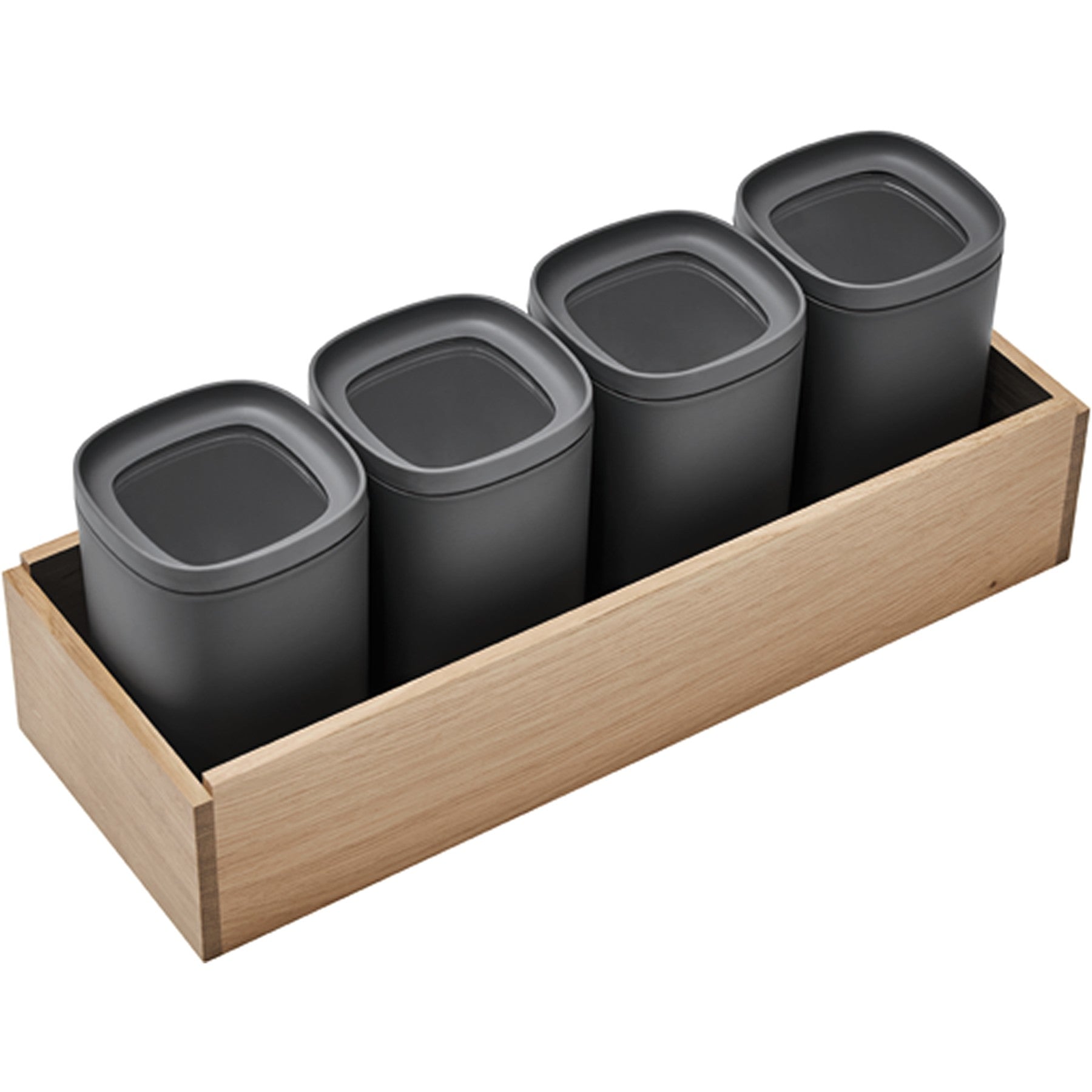 • Holz-Einsatz Eiche mit Vorratsdosen