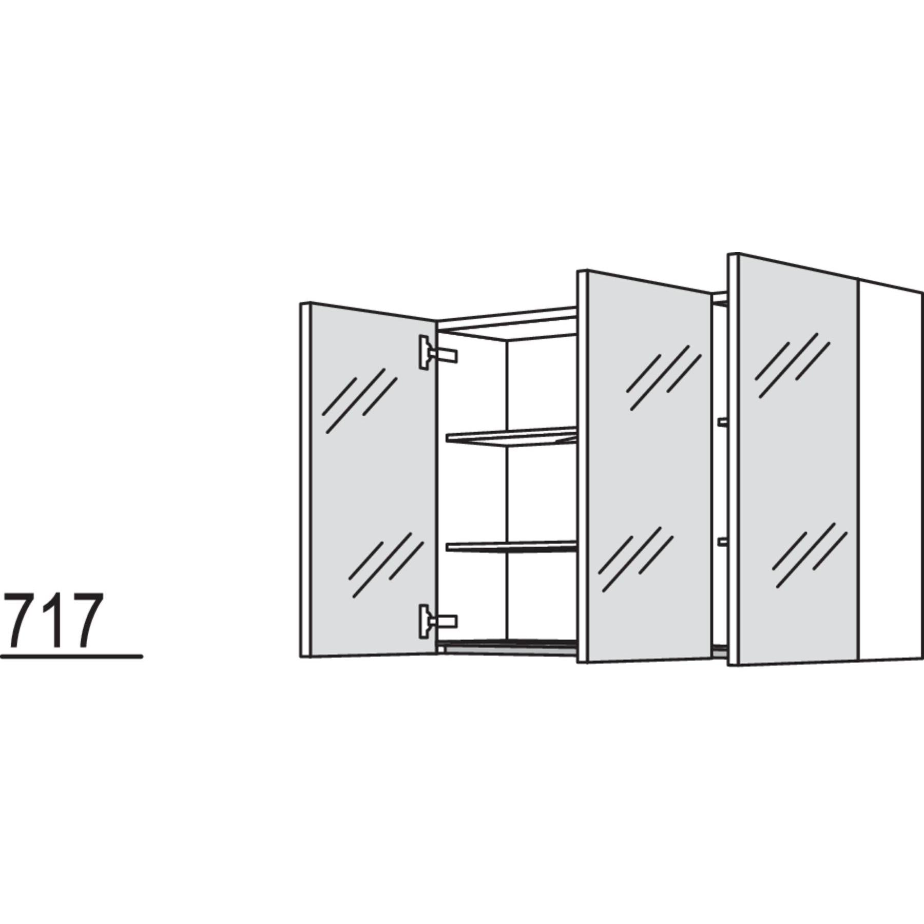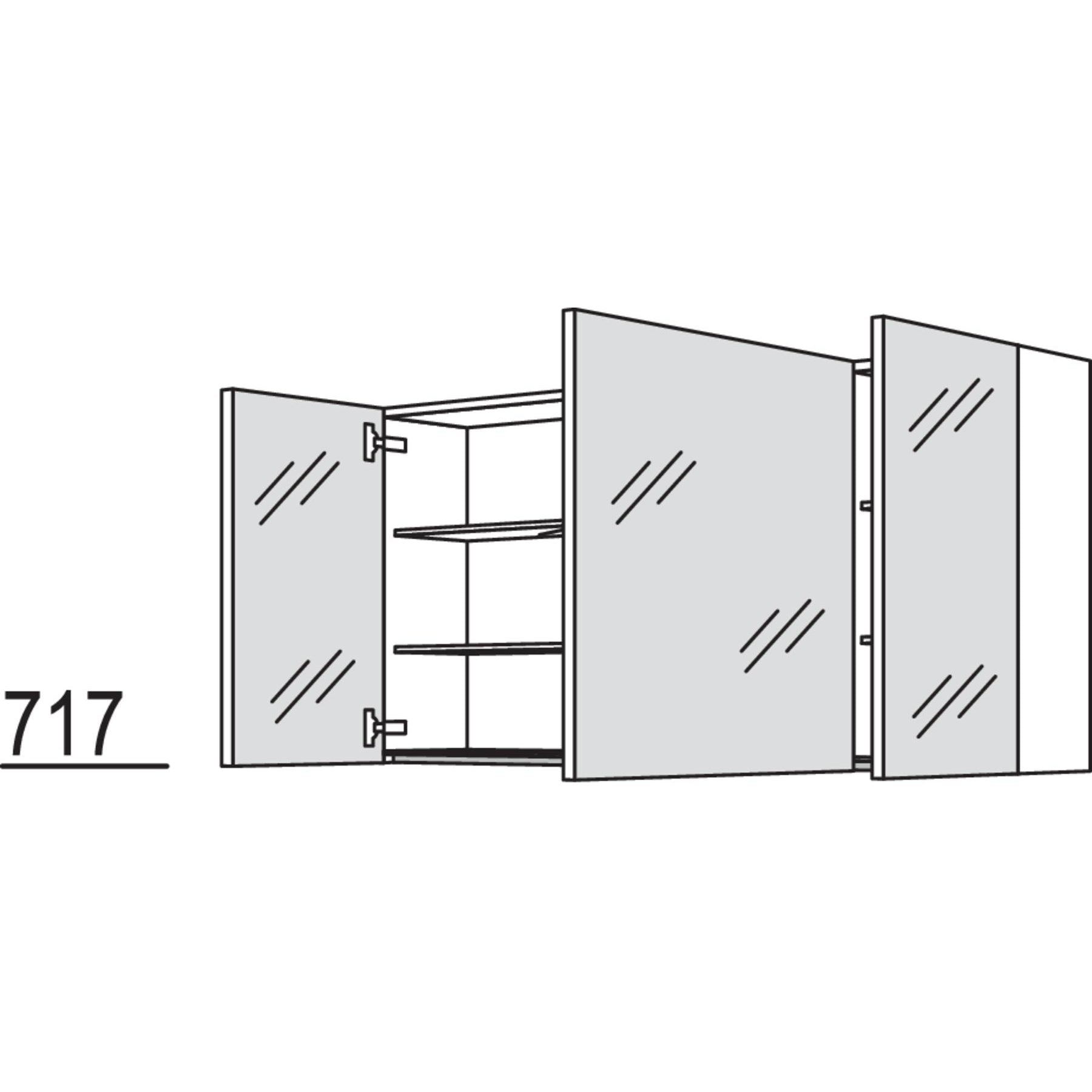 The nobilia mirrored cabinet is a high-quality and functional piece of furniture for your kitchen. With 3 mirrored doors and 4 glass shelves, this cabinet offers ample storage space for your kitchen utensils. The total depth is 210 mm, the side depth 202 mm, and the usable depth 178 mm.