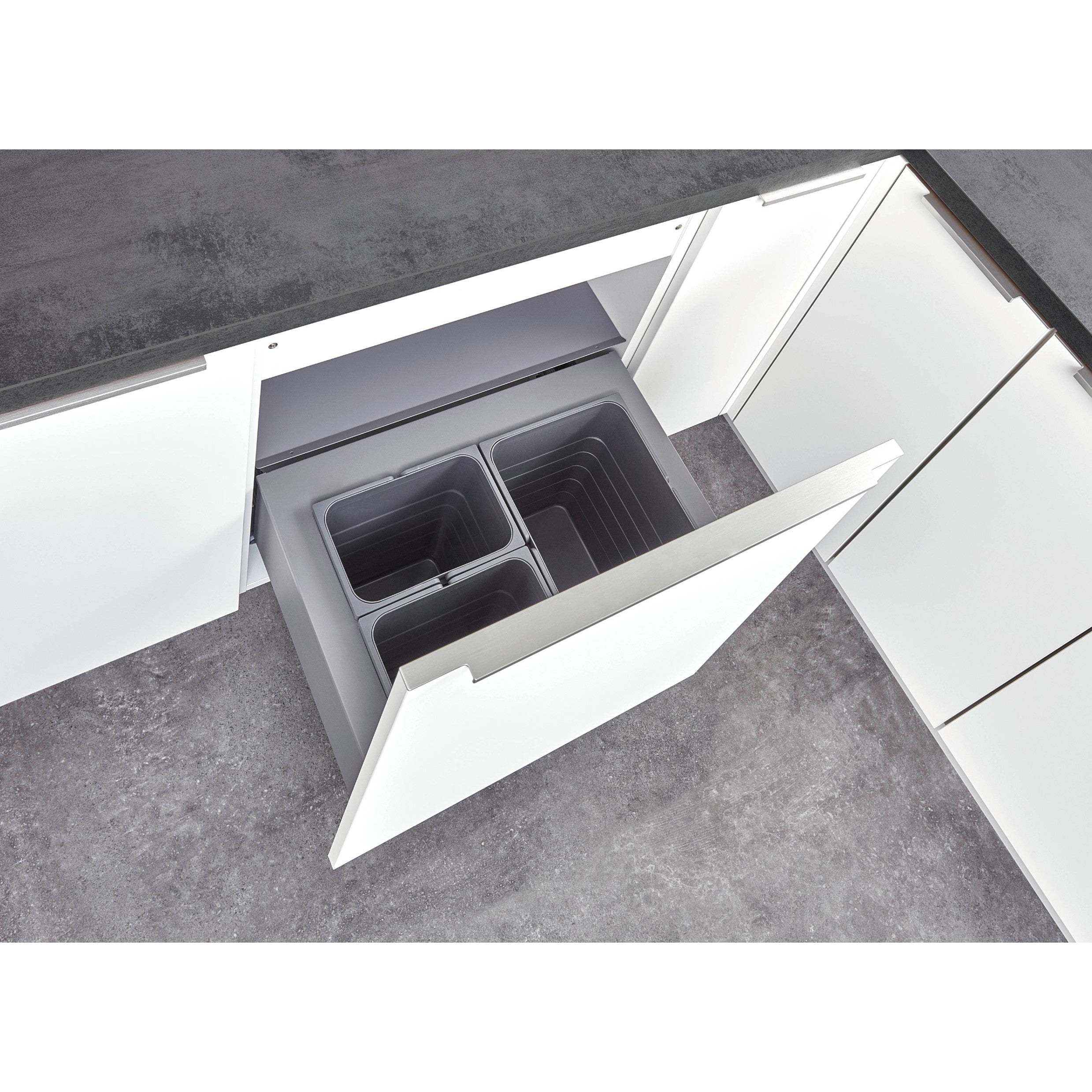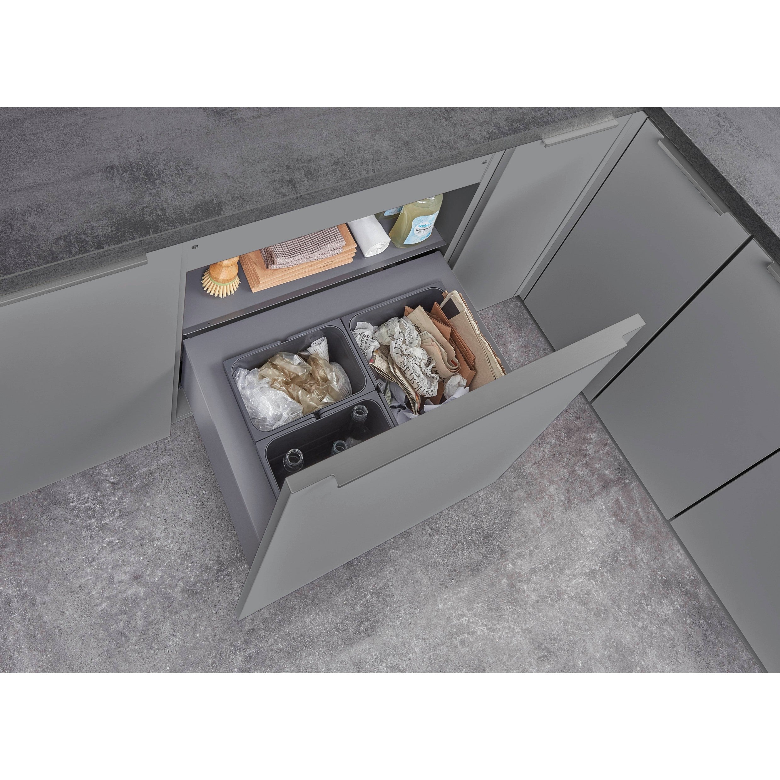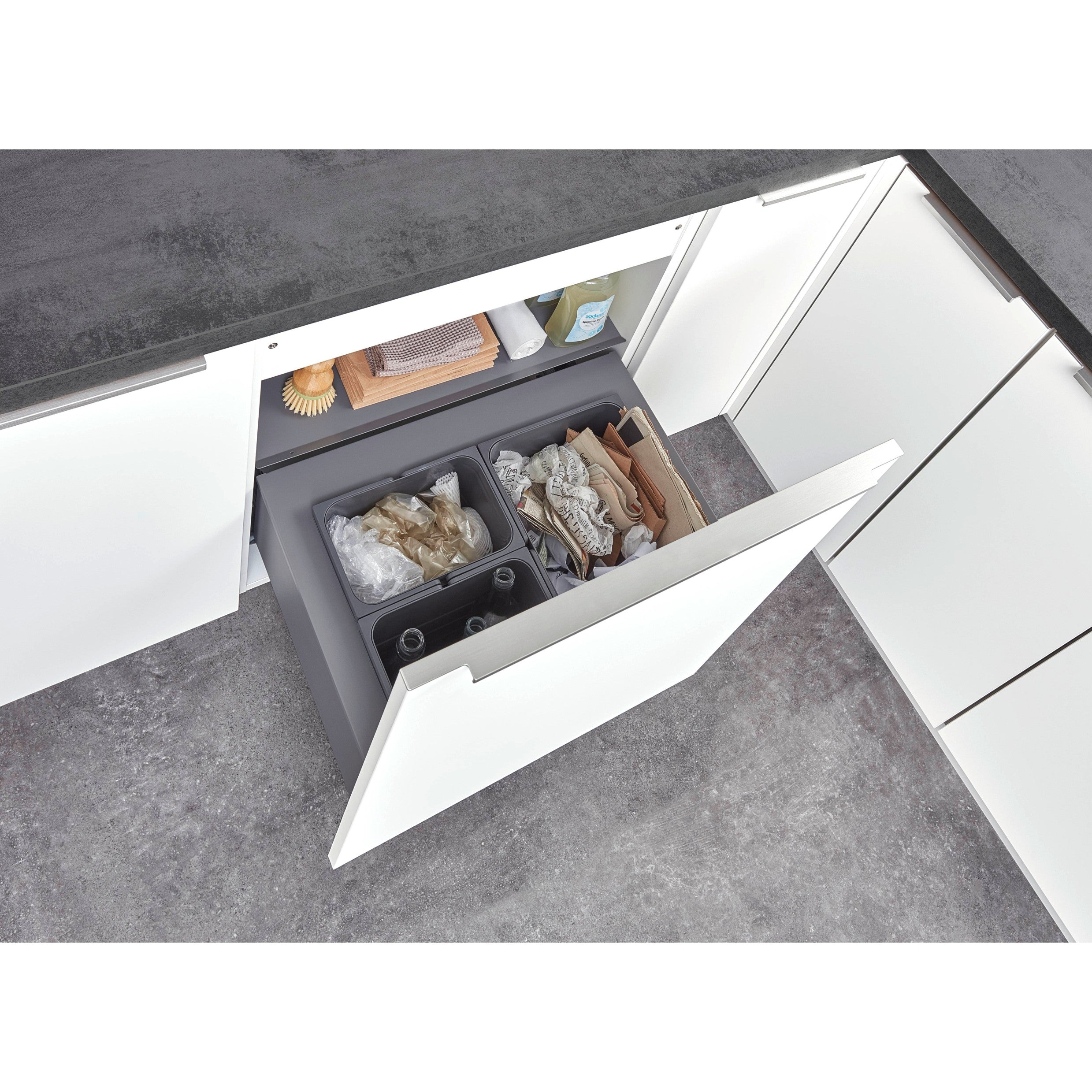 A special feature of this cabinet is the integrated waste separation system Zargen-Cargo, consisting of one 20-liter container and two 10-liter containers, complemented by a biodegradable lid. This system enables efficient and environmentally friendly waste separation directly at your workstation, thus supporting sustainable practices in your household.
