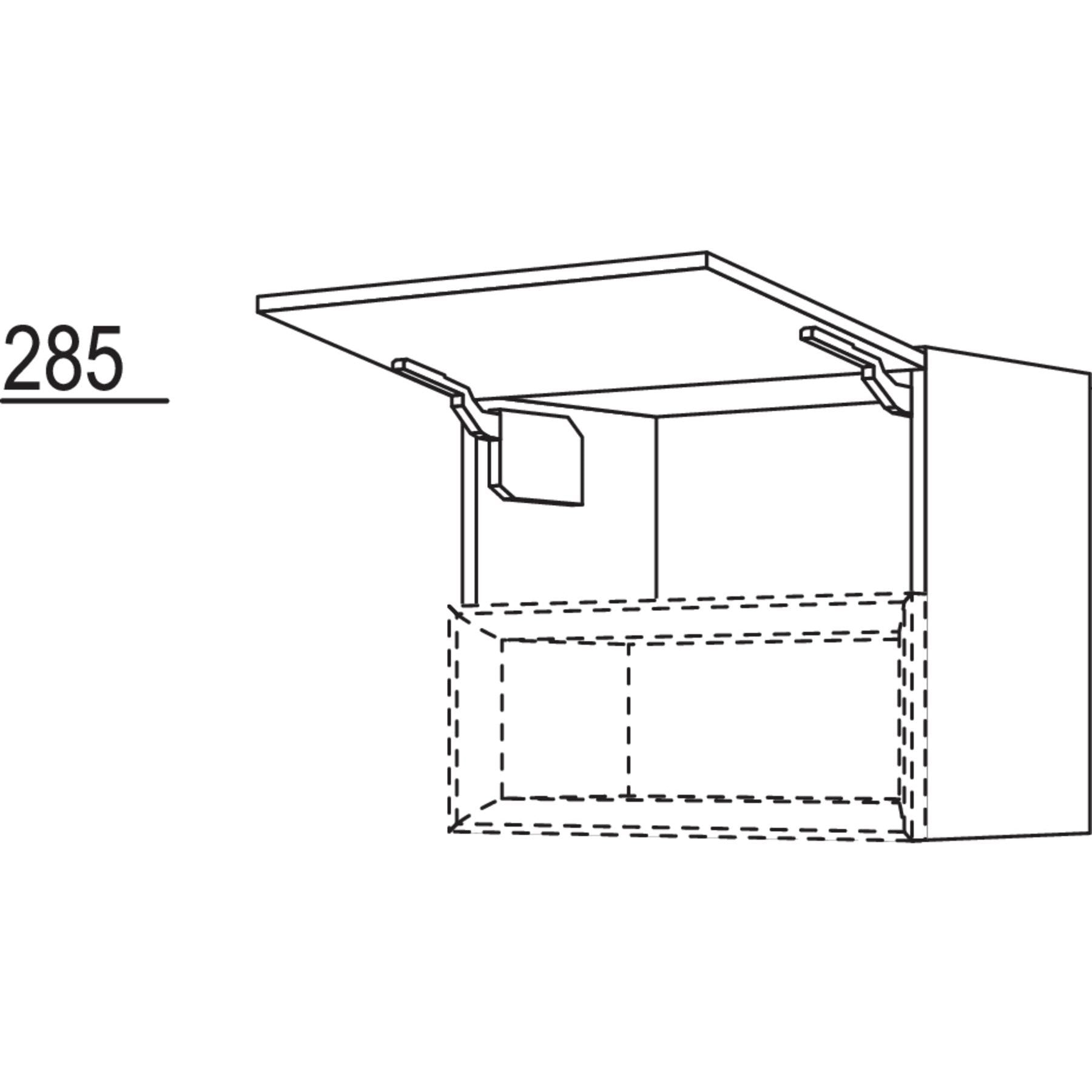 The nobilia wall cabinet with flap for the shelf insert Case offers not only storage space but also functionality and high-quality design. With a shelf insert height of 285 mm and a flap equipped with high-quality Blum Aventos lift fittings with soft-close function, this wall cabinet convinces in every respect.
