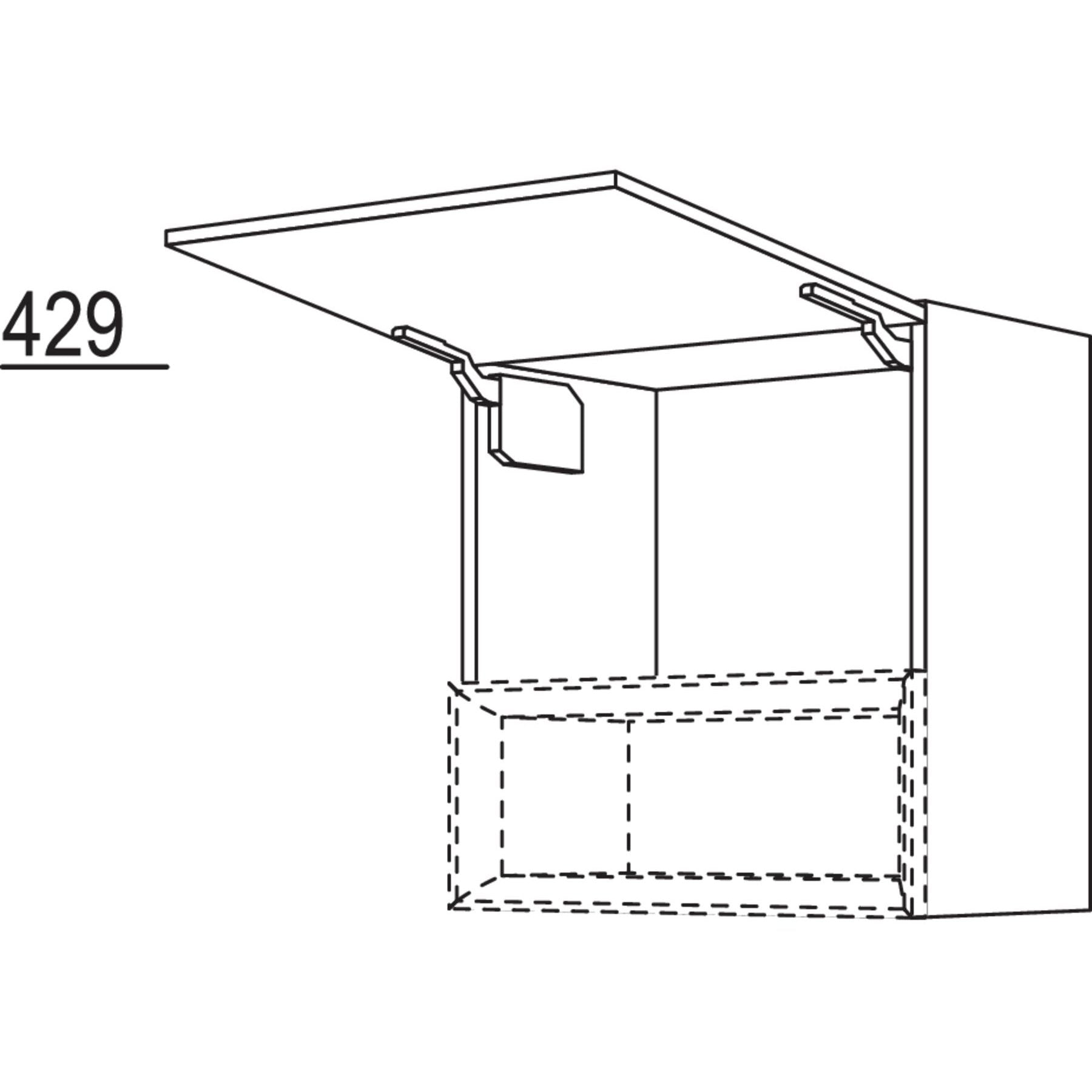 The nobilia wall cabinet with flap for the shelf insert Case offers not only storage space but also functionality and high-quality design. With a shelf insert height of 285 mm and a flap equipped with high-quality Blum Aventos lift fittings with soft-close function, this wall cabinet convinces in every respect.