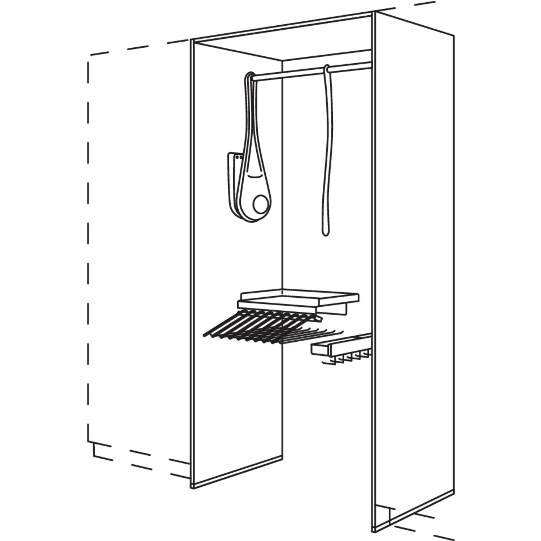 The clothes lift ensures that your garments can be stored neatly and within easy reach. The trouser holder with metal shelf and 9 hangers in anthracite offers sufficient space for trousers and other garments. The extendable tie/belt holder features 2 utensil trays and 10 hooks in anthracite to keep your accessories organized.