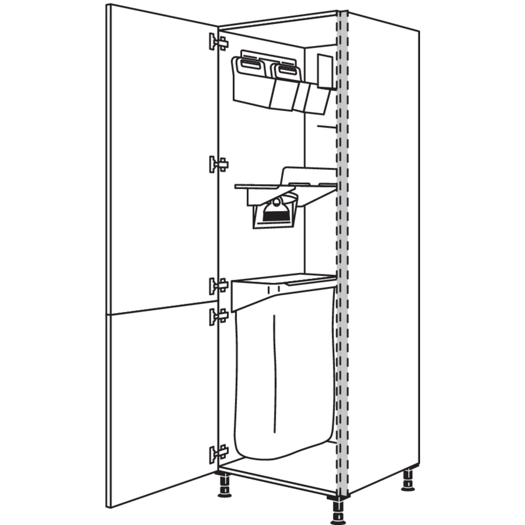 The nobilia XL tall cabinet with Laundry-Area organization system is the perfect solution to keep your kitchen organized and tidy. This tall cabinet features a rebated door with automatic cup hinges and door damper with soft-close function, ensuring gentle closing.