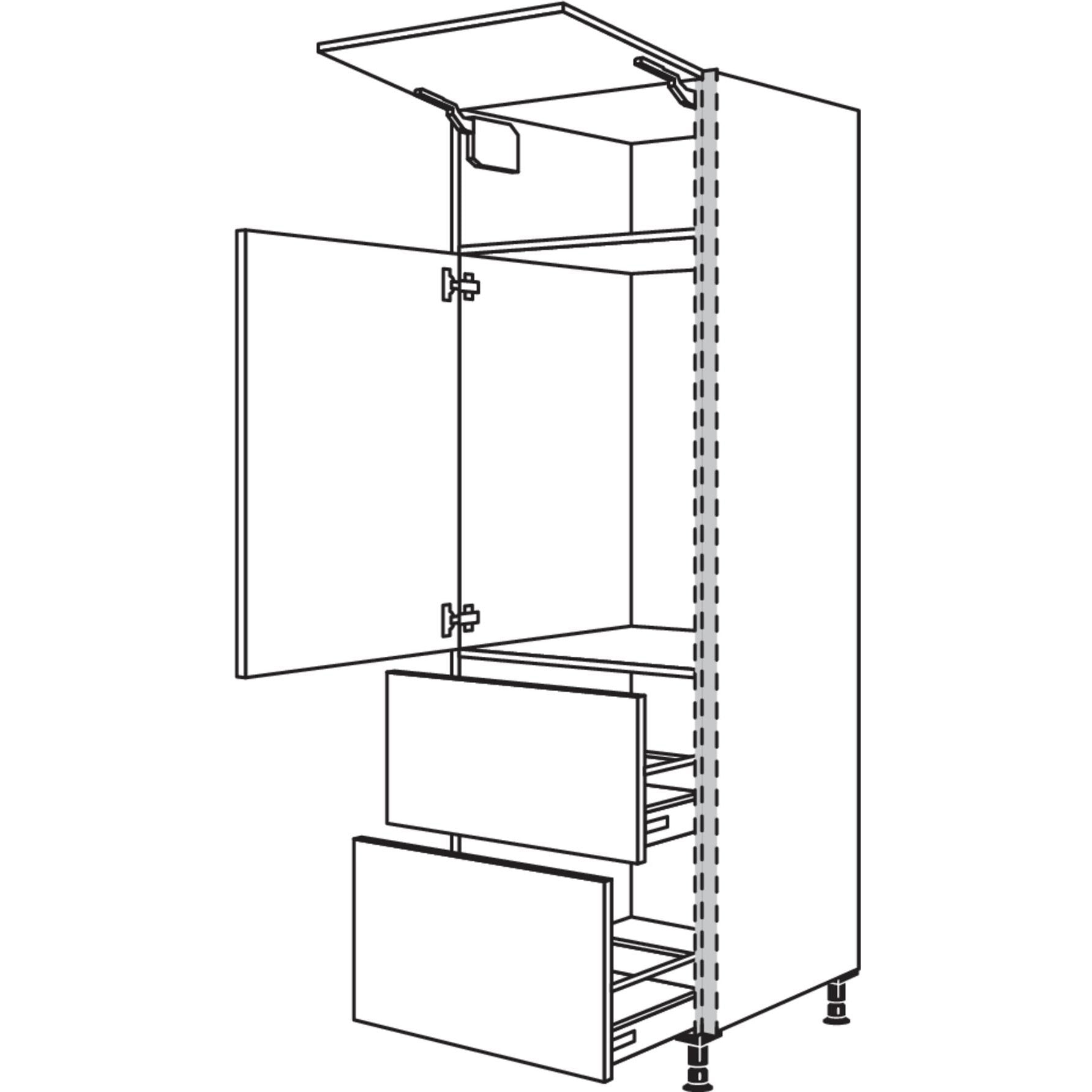 El mueble para electrodomésticos nobilia XL para frigorífico es la solución perfecta para su cocina. Con una altura de nicho de 880 mm, este armario encaja idealmente en el diseño de su cocina. Cuenta con 1 tapa con herrajes Blum Aventos de alta calidad para puertas elevables, que ofrecen función de cierre suave. Además, el armario ofrece 1 puerta para electrodomésticos y 2 cajones con guías de extracción total de alta calidad, equipados con amortiguación de entrada y salida Silent System / Soft-Close.