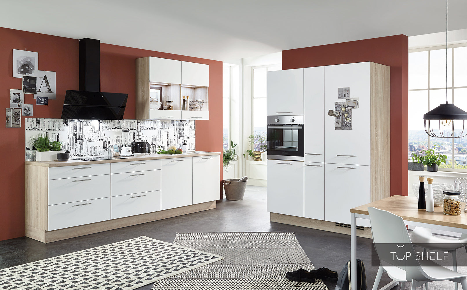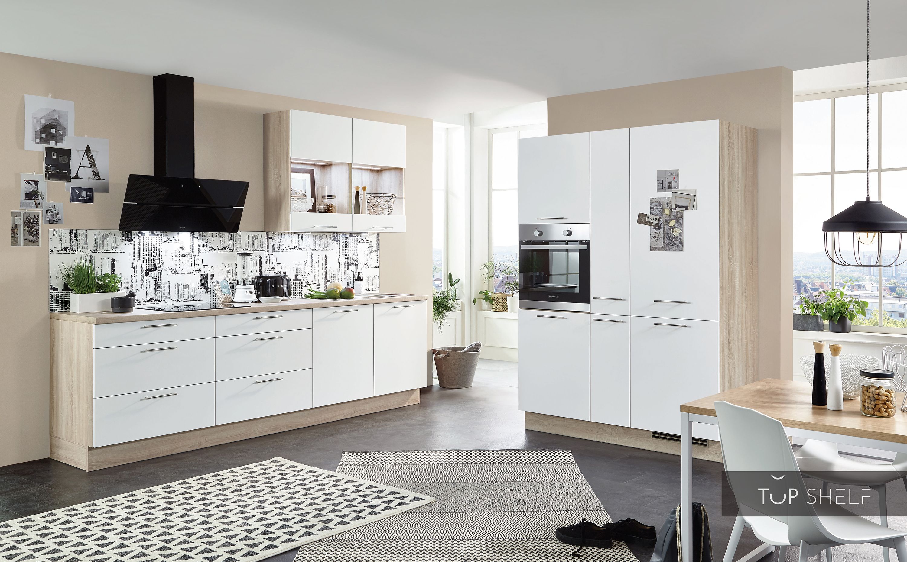 Si necesitas una cocina nobilia de alta calidad junto con armarios de cocina y electrodomésticos inmediatamente y no puedes esperar mucho, tenemos una solución para ti. Con el configurador de cocinas nobilia elements desarrollado por TOP-SHELF, puedes diseñar tu cocina de forma individual y recogerla directamente en fábrica 24 horas después de tu pedido. Puedes abrir la cocina nobilia elements fácilmente en nuestro planificador de cocinas 3D y ajustarla individualmente según tus deseos. Todas las cocinas y armarios de cocina nobilia elements ofrecidos en el decor Tourch 332 Alpinweiß supermate están disponibles inmediatamente en stock y el envío se realiza en pocos días. Puedes recoger tu pedido gratuitamente en días laborables 24 horas después de la recepción del pago directamente en la fábrica nobilia. Más información sobre los tipos de envío y tiempos de envío ofrecidos la encontrarás en Información de envío.
