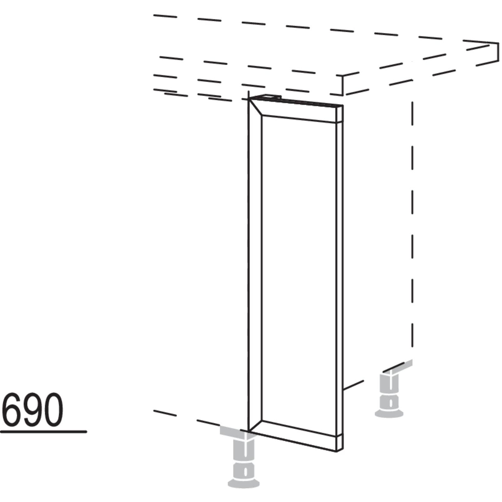 Dé a su cocina el toque final con la pieza de paso frontal de alta calidad de nobilia. Este elemento indispensable no solo asegura una apariencia armoniosa, sino que también cierra el espacio entre su armario de cocina y la pared. Así se crea una imagen global continua y estéticamente atractiva.