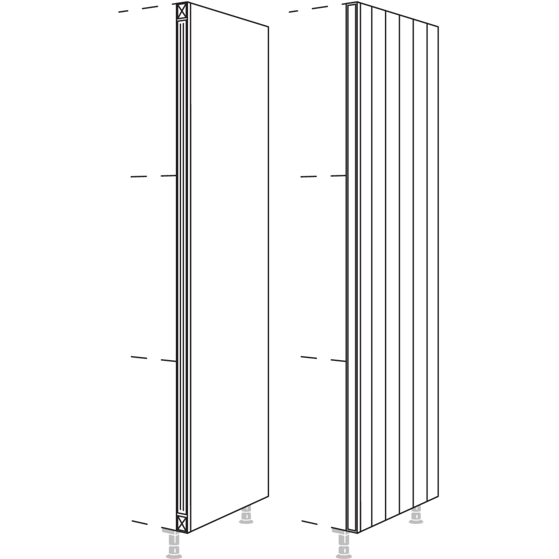 El nobilia Hochschrank-Pilaster es adecuado para los programas Cascada 684, Nordic 497, Sylt 706, Castello 224 y Chalet 977. Con un ancho de 50 mm, una profundidad de 583,5 mm (excepto en Cascada 684 y Nordic 497, donde la profundidad es de 586 mm) y una altura de 2160 mm, el pilaster ofrece un complemento óptimo para sus armarios altos.