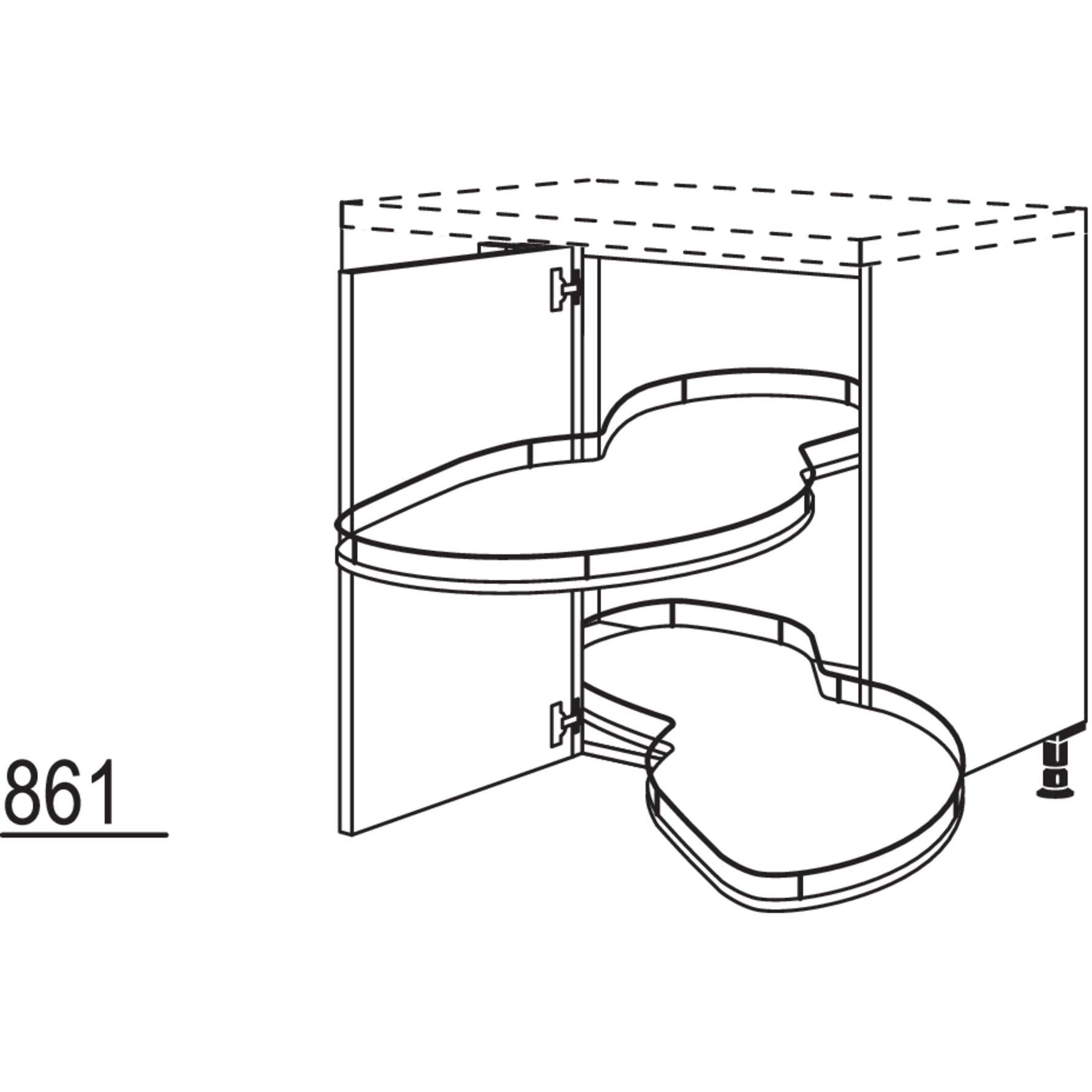 Este Maxi-Eckschrank está equipado con una puerta continua, detrás de la cual se esconden dos estantes abatibles de madera ajustables en altura con barandilla metálica. Estos le ofrecen un espacio de almacenamiento flexible para ollas, sartenes y otros utensilios de cocina. La pieza angular incluida permite una integración perfecta en su cocina, mientras que el ancho del cuerpo de 1000 mm y las medidas variables de planificación de 650 - 750 x 1150 - 1250 mm aseguran que el armario encaje perfectamente en su espacio.