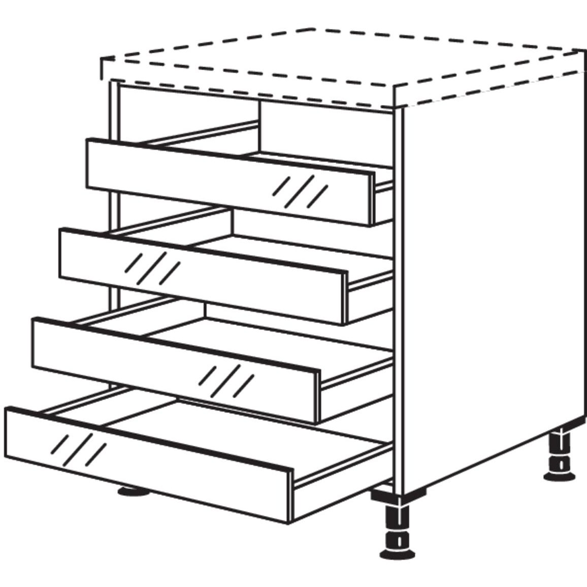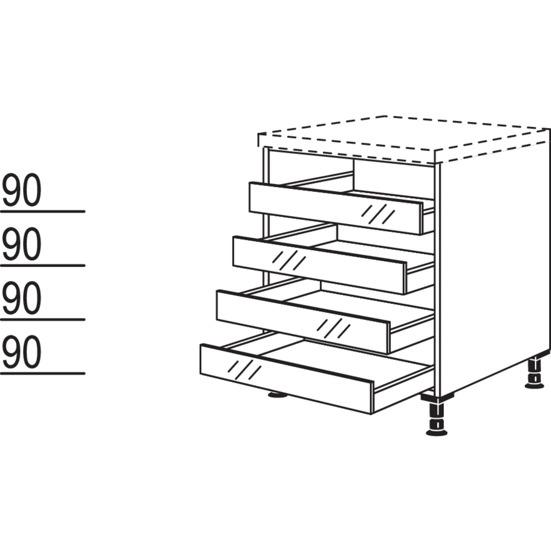El nobilia mueble bajo con cajones de estantes ofrece 4 cajones metálicos en antracita, que representan una solución de almacenamiento elegante y práctica para su cocina. La alfombrilla antideslizante incluida asegura que sus objetos se mantengan seguros y estables. Con una profundidad lateral de 582 mm, este mueble bajo ofrece suficiente espacio para sus utensilios de cocina.