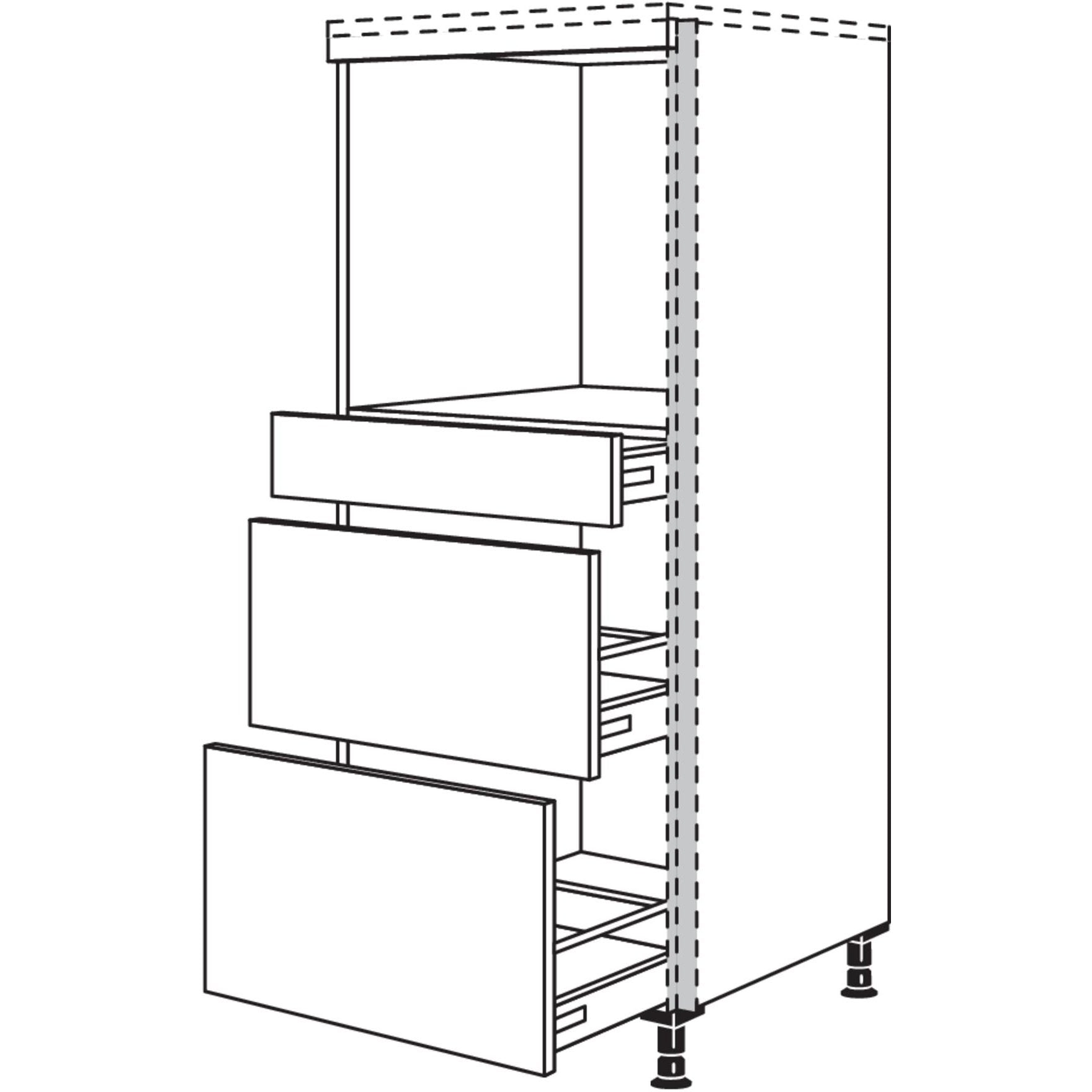 El mueble de conversión para horno nobilia XL es el complemento perfecto para su cocina. Con una altura de nicho de 590 mm, este mueble de conversión encaja idealmente en el diseño de su cocina. Cuenta con una tapa compensadora fija, un cajón con amortiguación de extracción de alta calidad y función Soft-Close de Hettich, así como dos cajones con guías telescópicas de alta calidad equipados con amortiguación de entrada y salida Silent System / Soft-Close.