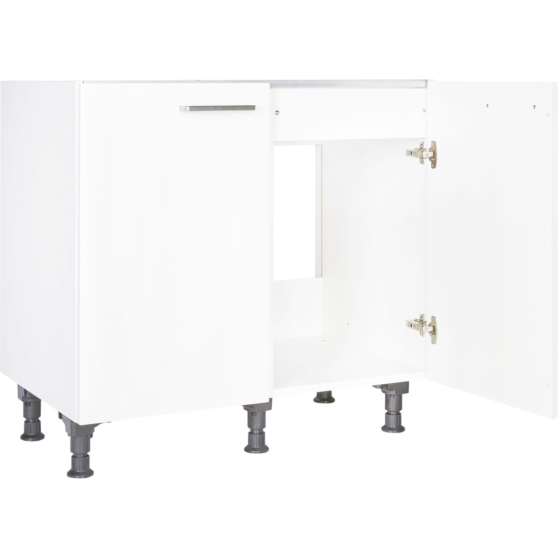 Le meuble de cuisine pour l'installation d'éviers blanc est également disponible en largeurs 45 cm et 60 cm sous les désignations SPUD 45 et SPUD 60.