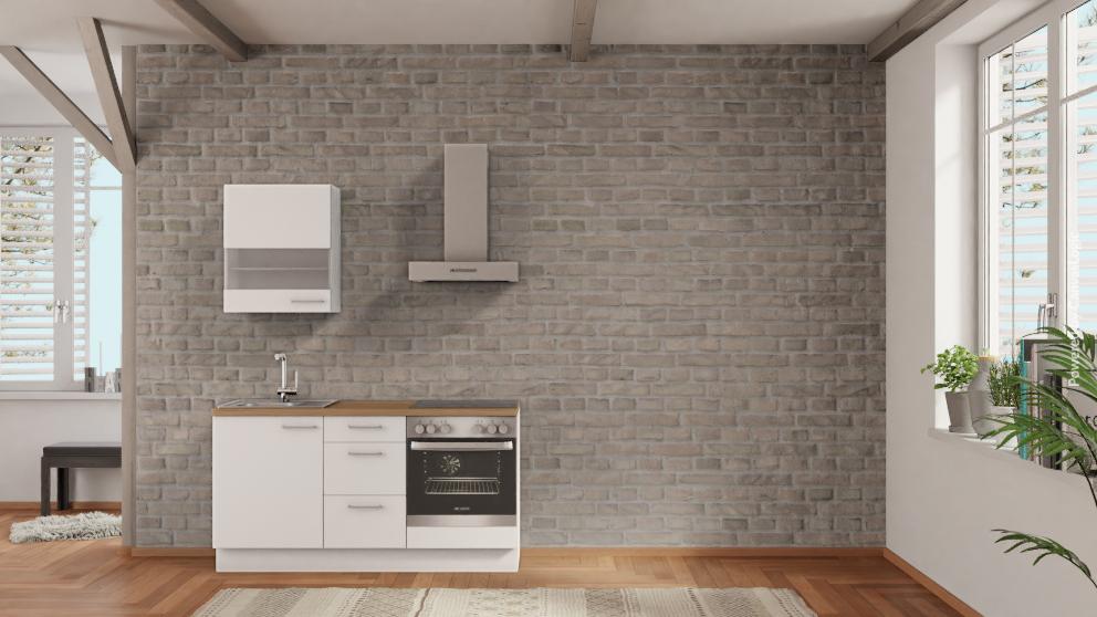 nobilia Minicuisine Mülheim avec four | Configurateur de cuisine 3D | Mini-cuisine en blanc alpin à prix avantageux de la gamme nobilia Elements | 165 cm de large | 2,15 m de haut | 60 cm d'espace pour par ex. une hotte aspirante | sans four encastré | Cuisine sans réfrigérateur | Plaque vitrocéramique autonome