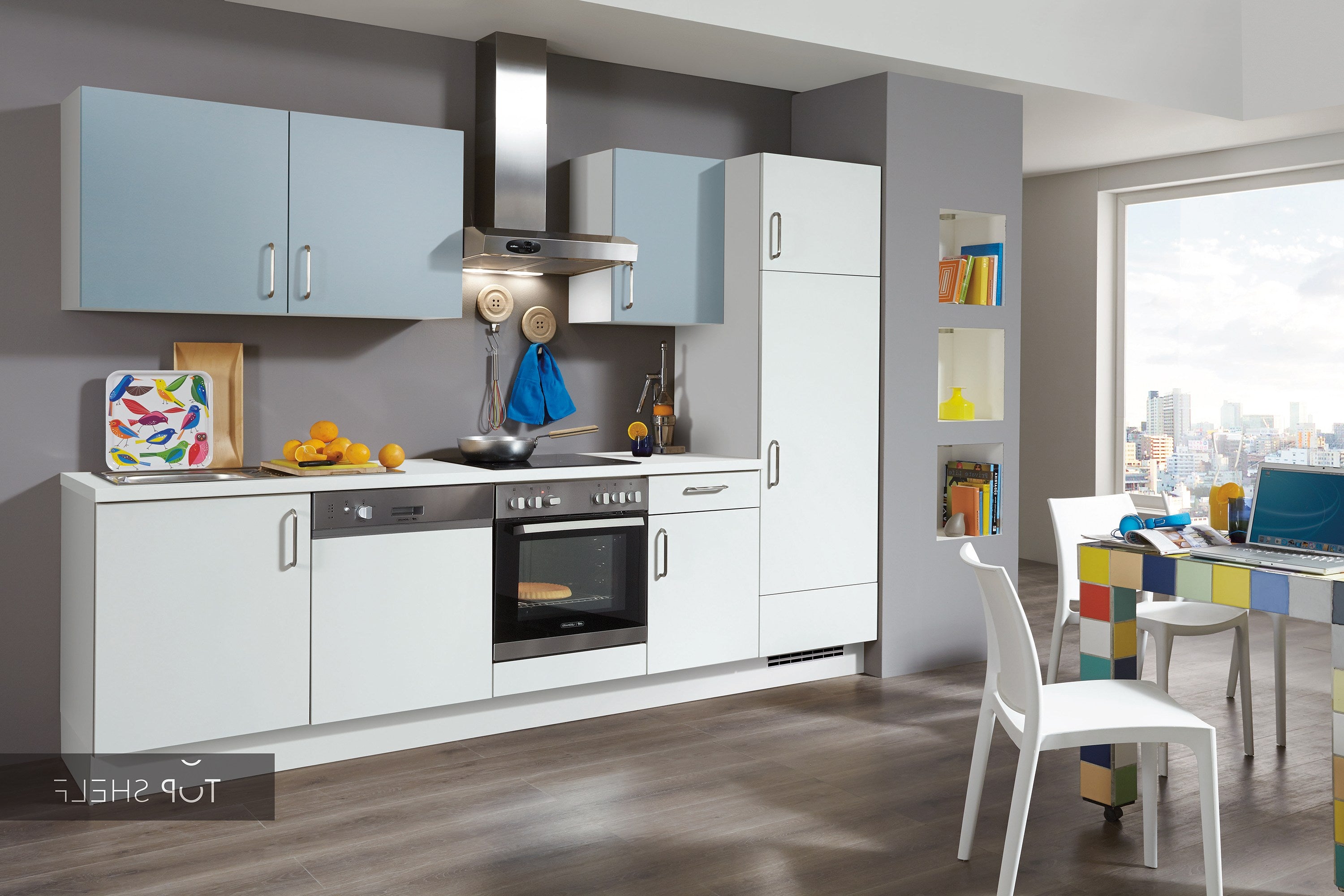 La cuisine nobilia entièrement préassemblée se compose d'une ligne de cuisine d'une longueur totale de 2,90 m | 290 cm. La cuisine équipée comprend une armoire sous-évier, une armoire basse, un caisson pour four, un caisson pour appareil pour le réfrigérateur automatique, deux armoires murales et une façade continue pour un lave-vaisselle partiellement intégré. Les armoires basses et le caisson pour appareil ont le décor 239 Weiß Softmatt, tandis que les armoires murales présentent le décor Color-Concept 254 Aqua. Les appareils encastrables adaptés des fabricants renommés, tels que Junker, Leonard ou Elica, sont proposés directement avec les cuisines. Vous pouvez commander les appareils électriques et les accessoires en option ou commander la cuisine sans appareils électriques et installer les vôtres.