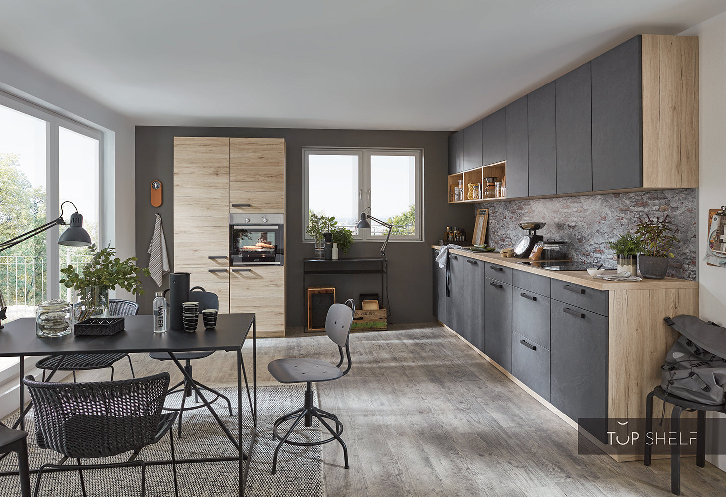 Les armoires nobilia de la série nobilia StoneArt se distinguent par leur surface de qualité durable et robuste, facile à entretenir. La façade est revêtue des deux côtés de résine mélaminée et dotée d'un chant en polymère en escalier de couleur assortie tout autour. Les façades StoneArt 303 imitation ardoise grise avec bords arrondis sont faciles à nettoyer et très peu exigeantes en entretien. À l'intérieur, les armoires de cuisine sont équipées de ferrures de haute qualité de la société Hettich. Toutes les armoires nobilia sont fabriquées de manière durable en Allemagne et sont déjà montées, chevillées et collées dans l'usine nobilia. Avec les armoires préassemblées, le montage fastidieux de plusieurs jours est évité et vous obtenez des armoires de cuisine très stables et durables de première qualité nobilia "Made in Germany".