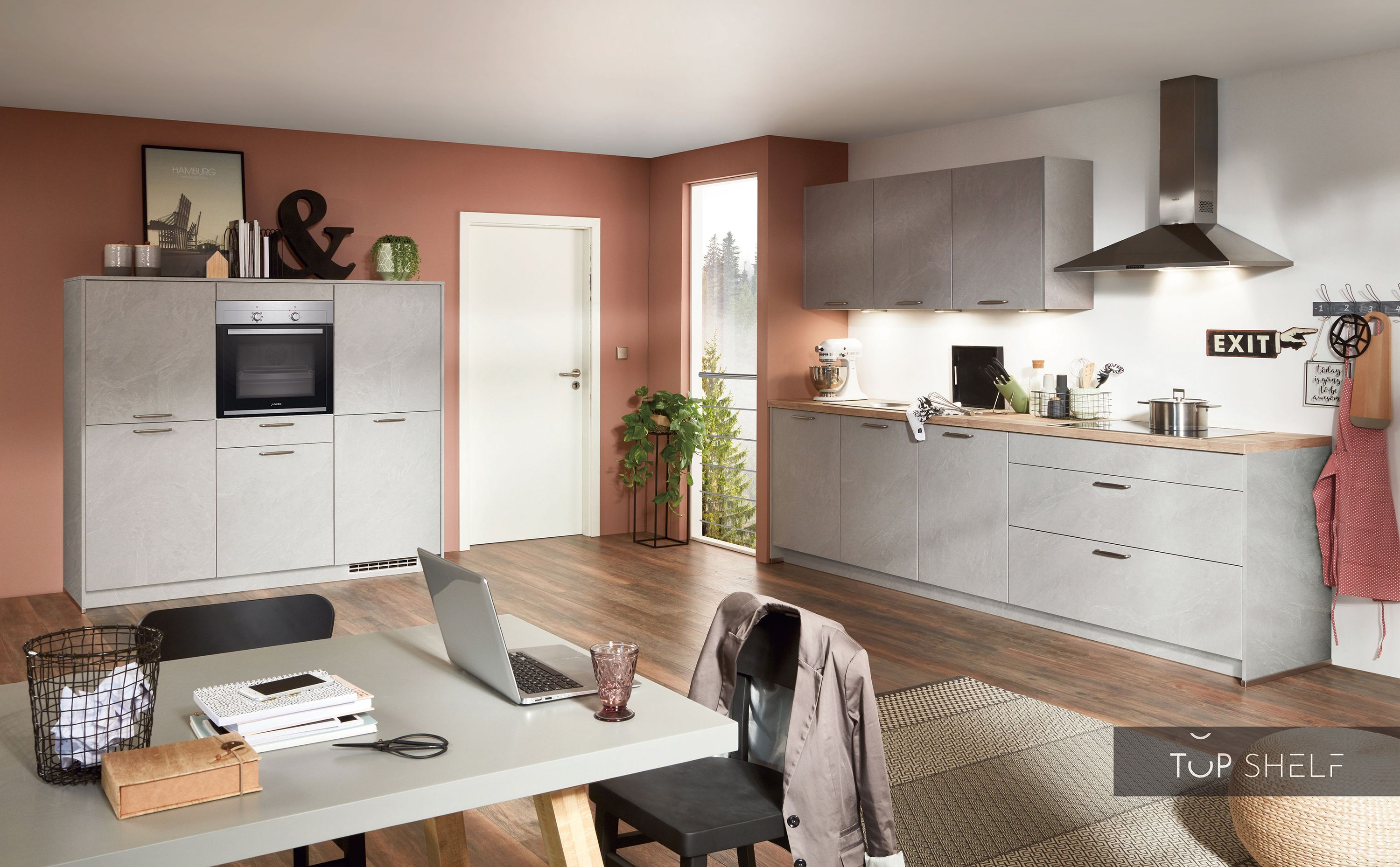 Grâce à notre planificateur de cuisine en ligne innovant, vous pouvez planifier une cuisine nobilia immédiatement disponible composée d'armoires de cuisine nobilia de haute qualité et d'appareils électriques en option. Le planificateur de cuisine en ligne 3D TOP-SHELF.de est très rapide, facile à utiliser, entièrement gratuit et vous montre immédiatement nos prix transparents !