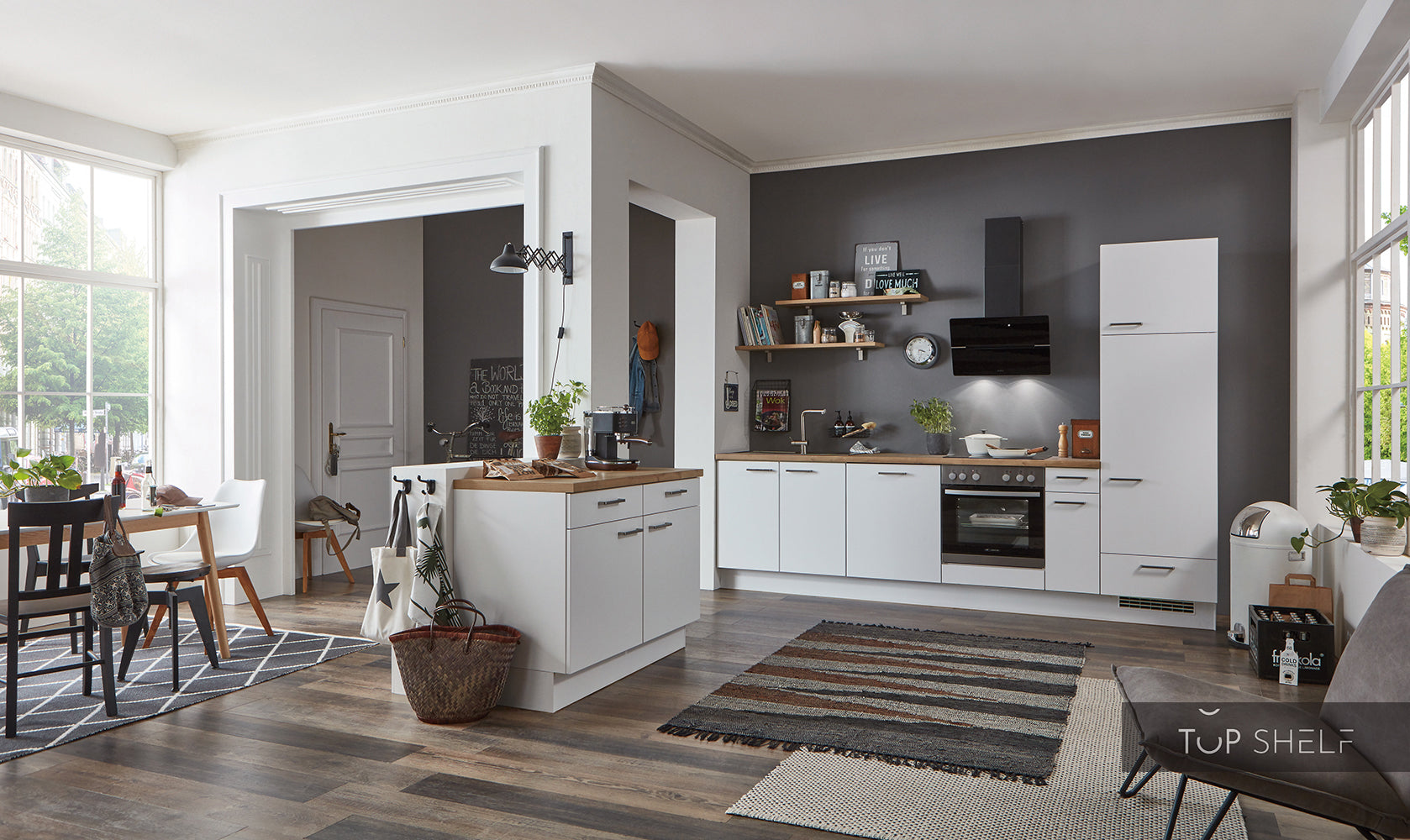 Configuration flexible de cuisine avec le configurateur de cuisine nobilia elements TOP-SHELF