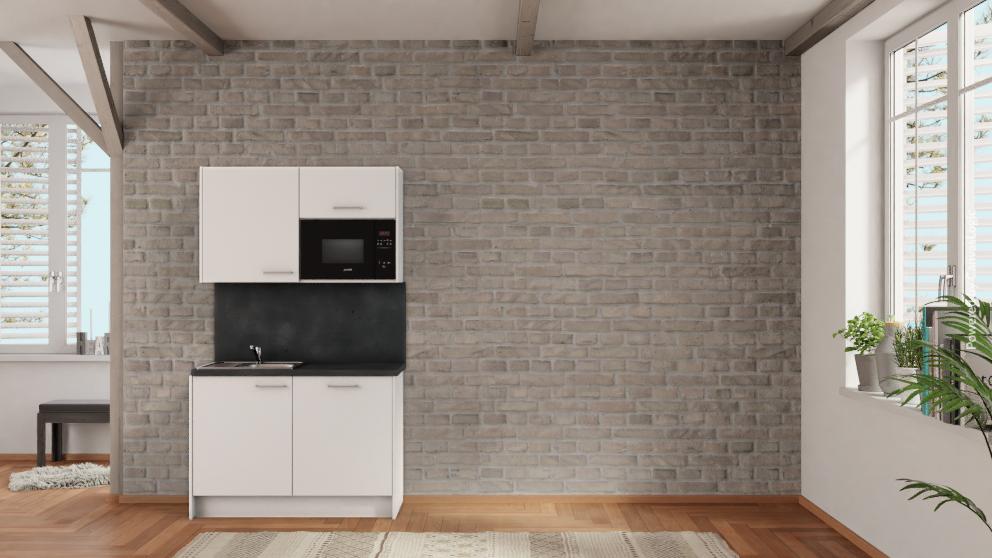 nobilia kitchenette Konstanz sans lave-vaisselle | Configurateur de cuisine 3D | Mini-cuisine en blanc alpin à prix avantageux de la gamme nobilia Elements | 120 cm de large | 2,15 m de haut | Mini-cuisine avec micro-ondes