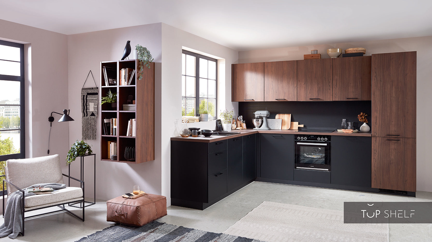 Cuisines immédiatement disponibles avec configuration flexible dans le configurateur de cuisine TOP-SHELF nobilia elements et retrait direct à l'usine
