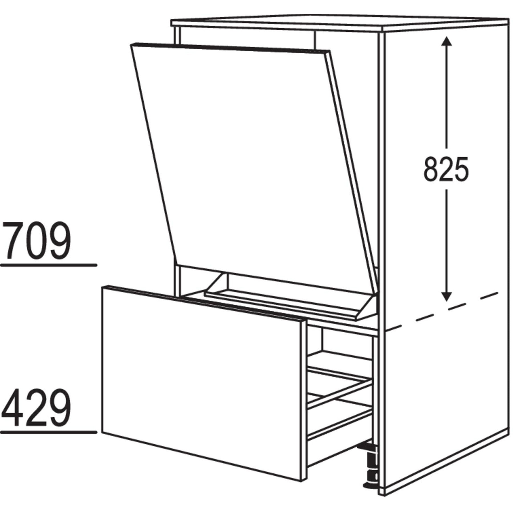 Der Geräte-Umbau Geschirrspüler von nobilia besteht aus einer Tür mit Automatik-Topfscharnieren und Soft-Close Funktion, einem Unterteil mit Auszug, einer Auffangschale, einem 16 mm starken Abdeckboden und zwei Abschlusswangen. Das Produkt wird inklusive Bodenprofil geliefert. Die Ausführung variiert je nach Gerätehöhe, bitte beachten Sie die beigefügten Skizzen.