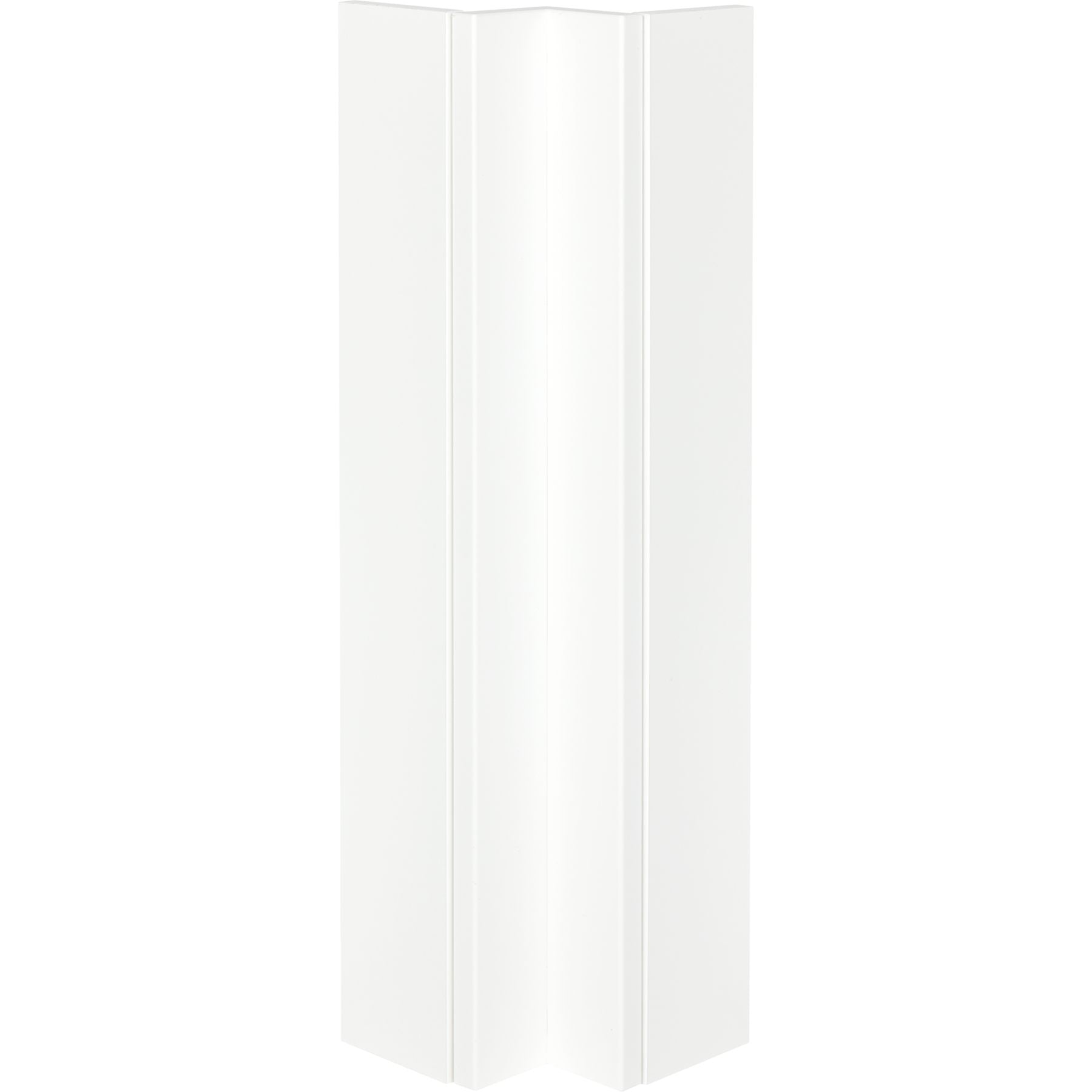 La pièce d'angle UPE 70 x 70 mm comble l'espace visible des meubles bas dans une cuisine d'angle / cuisine en L. La couleur correspond à la couleur de la façade des cuisines nobilia elements 332 Alpinweiss matt. La pièce d'angle nobilia elements est utilisée comme élément de remplissage dans l'angle pour les meubles bas nobilia elements prévus en angle, afin de créer une façade continue.