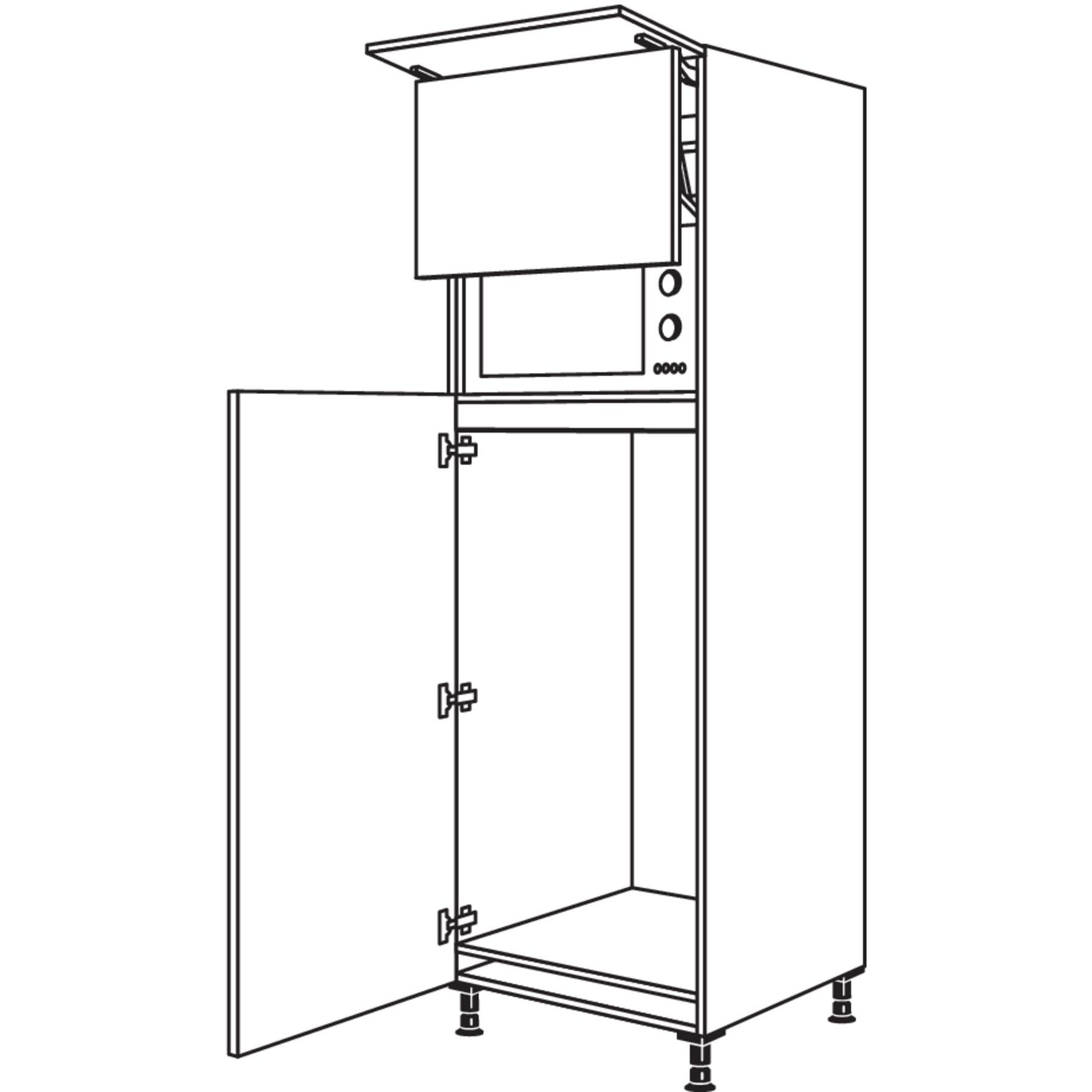 La niche d'armoire derrière la porte relevable est spécialement conçue pour les micro-ondes sur pied avec une hauteur d'appareil allant jusqu'à 370 mm et une largeur d'appareil allant jusqu'à 510 mm. La plage d'ouverture de la porte relevable vers le haut est de 224 mm, ce qui vous offre suffisamment d'espace pour une utilisation quotidienne.